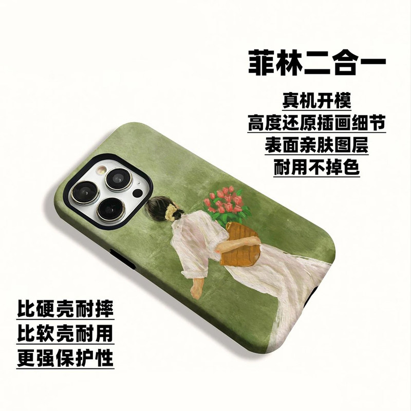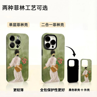 花束少女背影新款 适用苹果17Pro手机壳iPhone16max小米15华为mate70pura80k60reno14荣耀400vivox300一加ace5