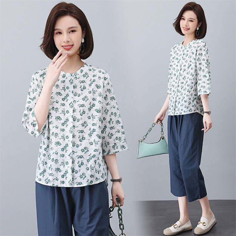 宽松洋气纯棉上衣 女夏季 通勤风刺绣碎花五分袖 衬衫