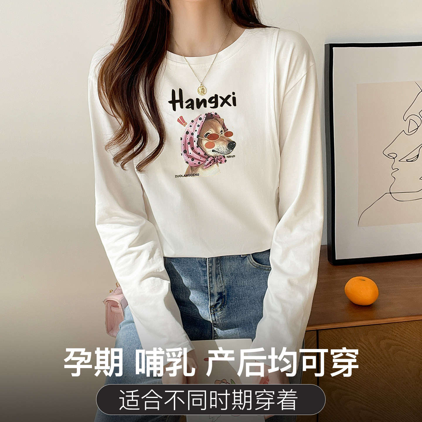 纯棉哺乳上衣可外穿潮妈哺衣t恤长袖 产妇母乳期方便喂奶衣服宽松