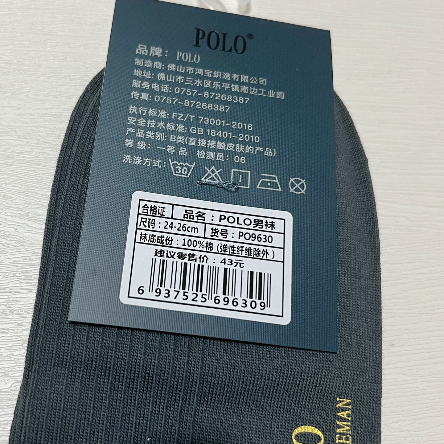 POLO保罗2025男秋冬纯棉休闲中筒袜子9633透气保暖袜9630