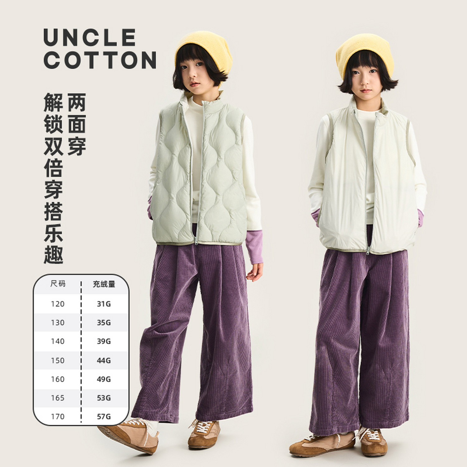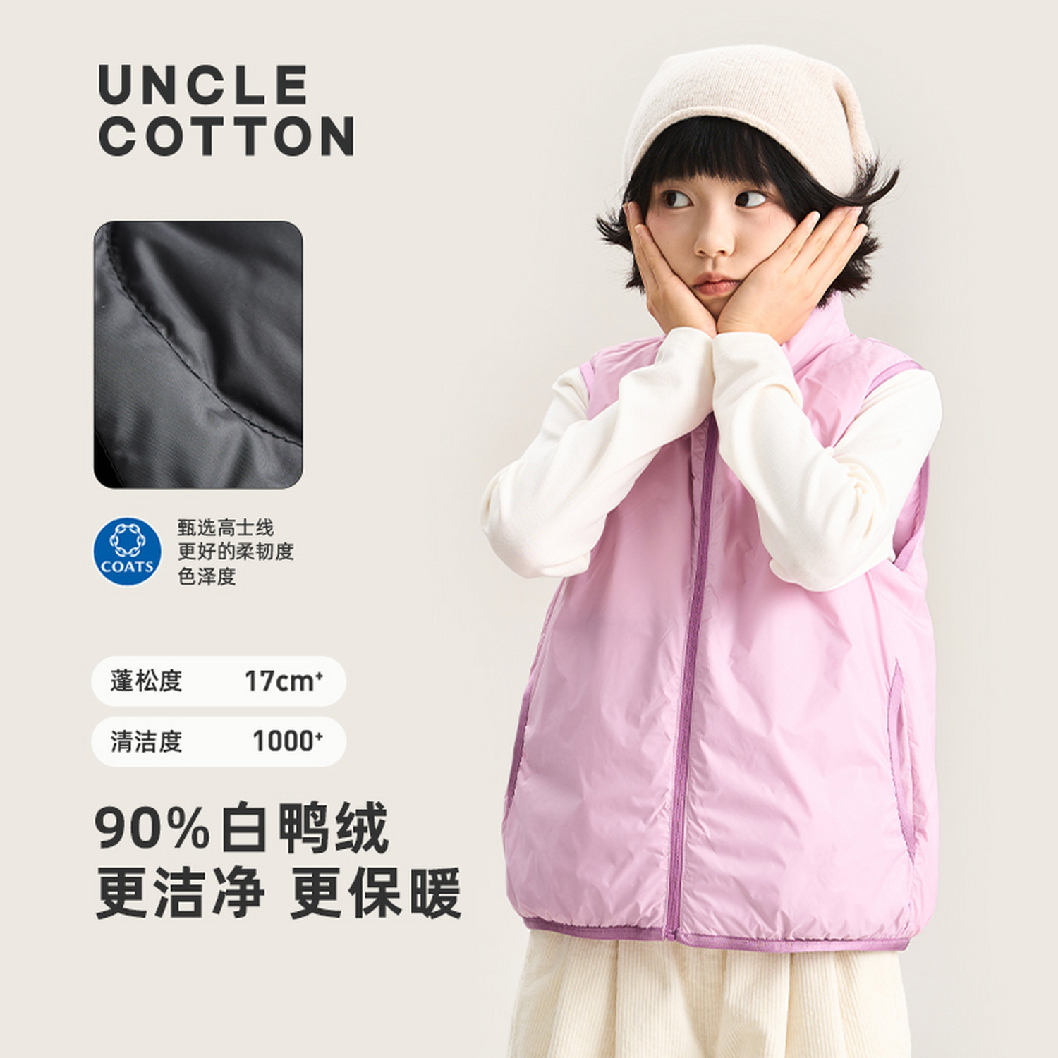 三防羽绒服保暖90白鸭绒 棉叔叔女童冬立领大码 双面穿羽绒马甲