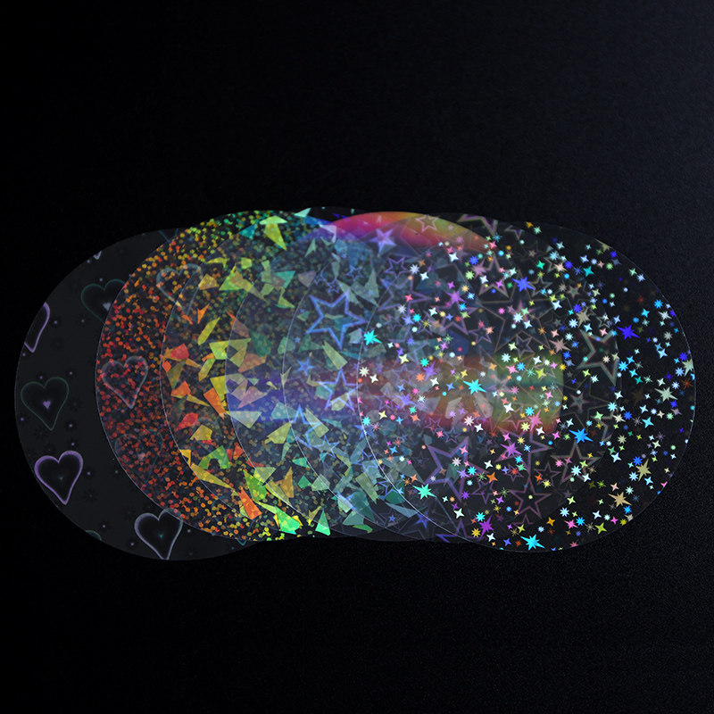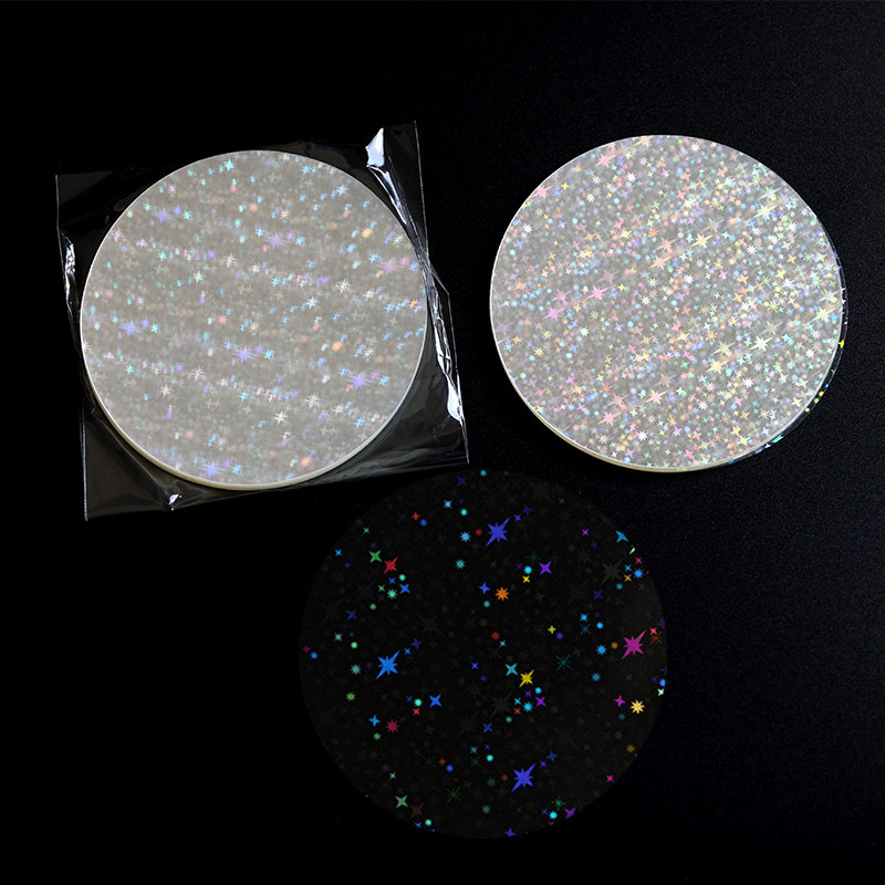 75mm胸章吧唧塑料镭射膜PET徽章圆形碎玻璃彩虹花色闪亮膜100张
