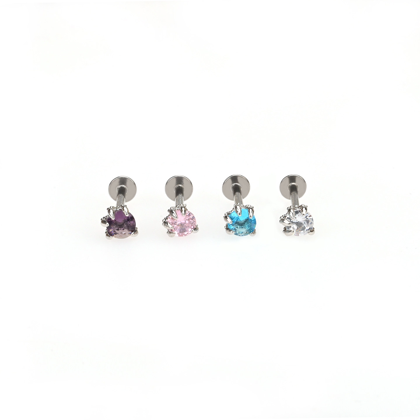 Raccon浣熊 唇钉钛钢锆石耳骨钉外螺纹甜美耳钉穿刺饰品 爆闪龙爪