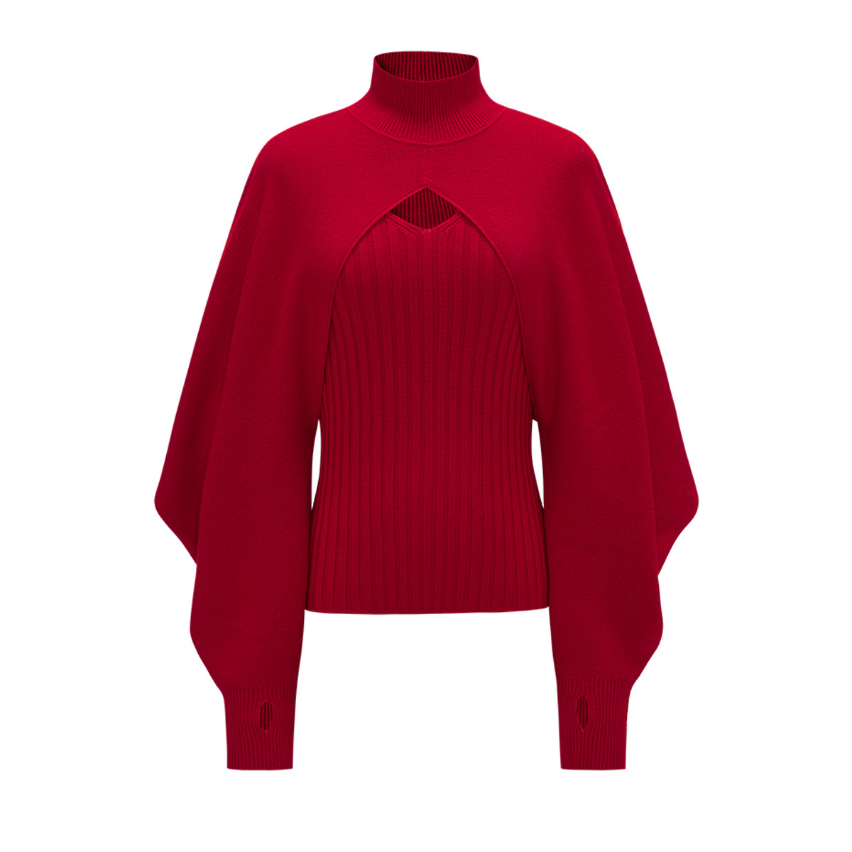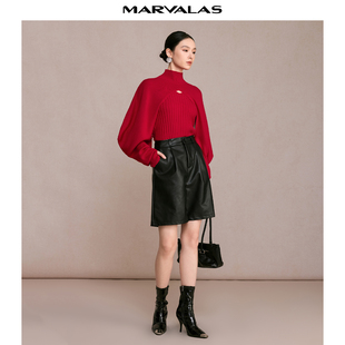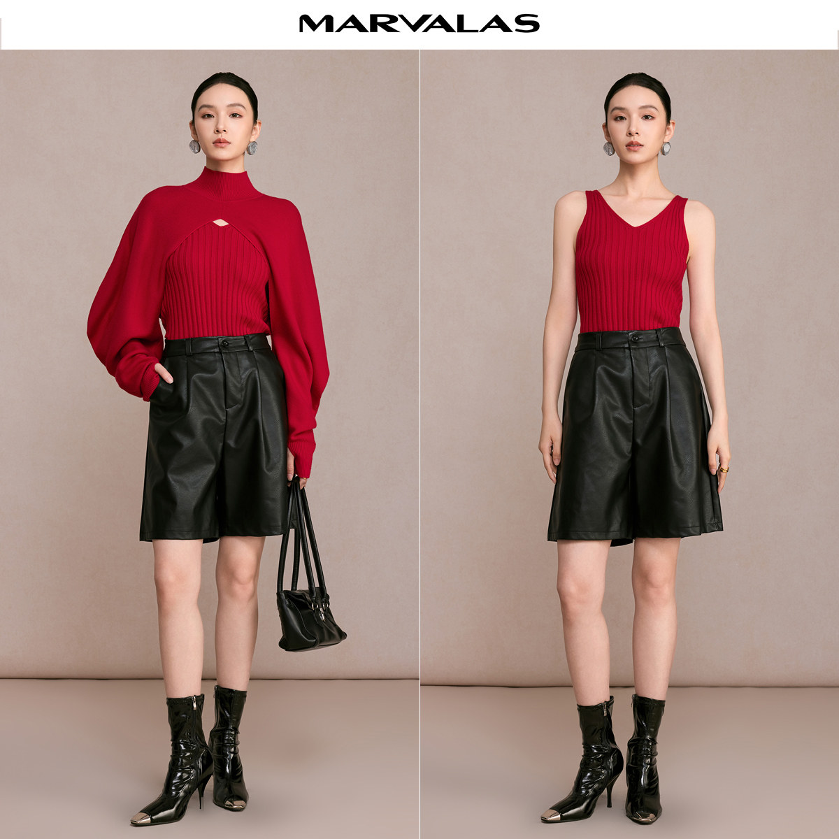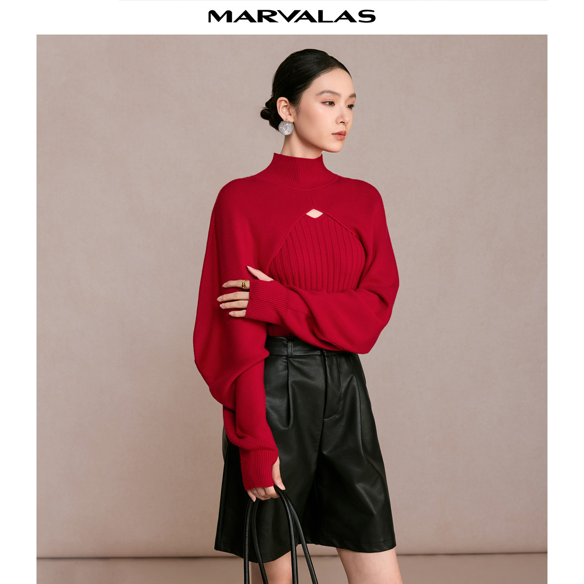 新款 2025秋季 全羊毛针织背心披肩设计感毛衣 套装 曼德诗新年红时尚