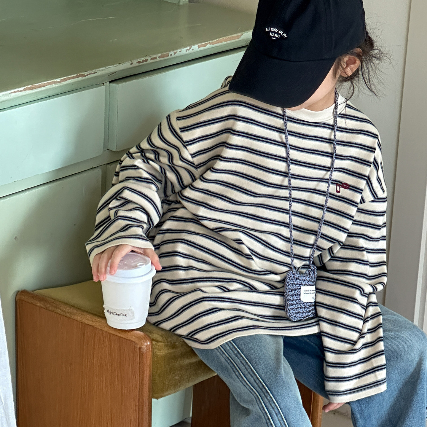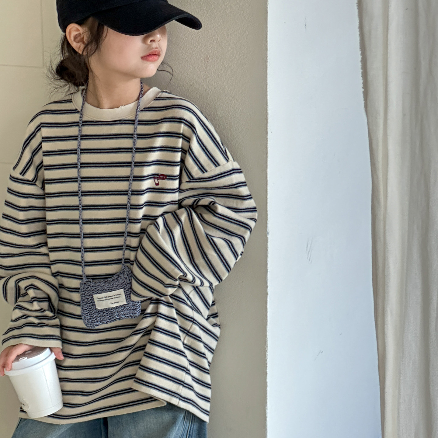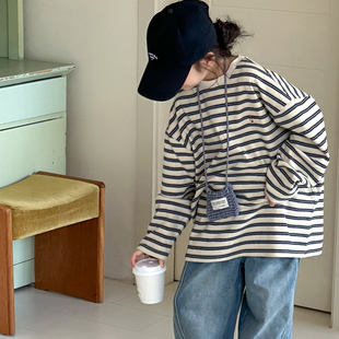 大童秋装 女童长袖 儿童洋气条纹加厚打底衫 2025新款 上衣 T恤春秋款