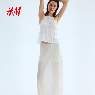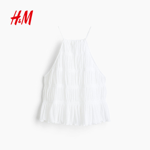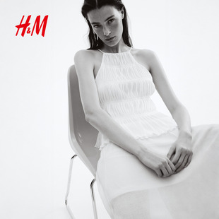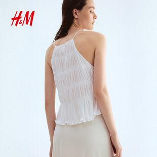 修身 新款 显瘦挂脖无袖 时尚 1290445 HM女装 缩褶吊带衫 背心2025夏季