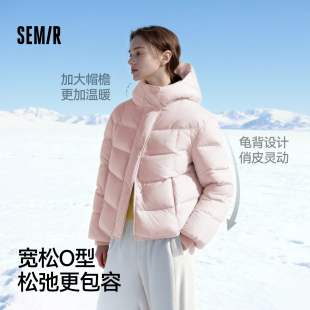 轻松 龟背连帽外套 森马羽绒服女冬90绒子三防发热抗静电2025新款