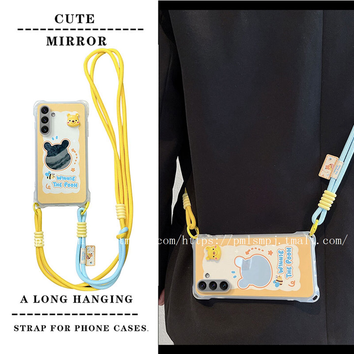 简晴适用于三星A56手机壳A36镜面卡通A16全包边A55防摔四角A35斜挎A25挂绳A51女款 A53 A54全包边S24ULTRA时尚