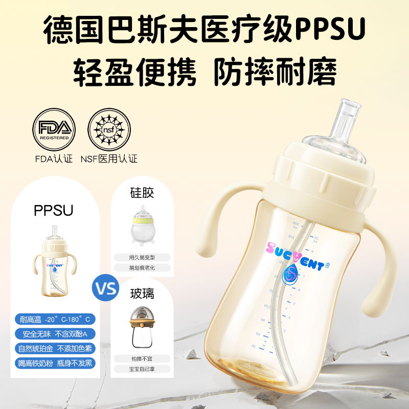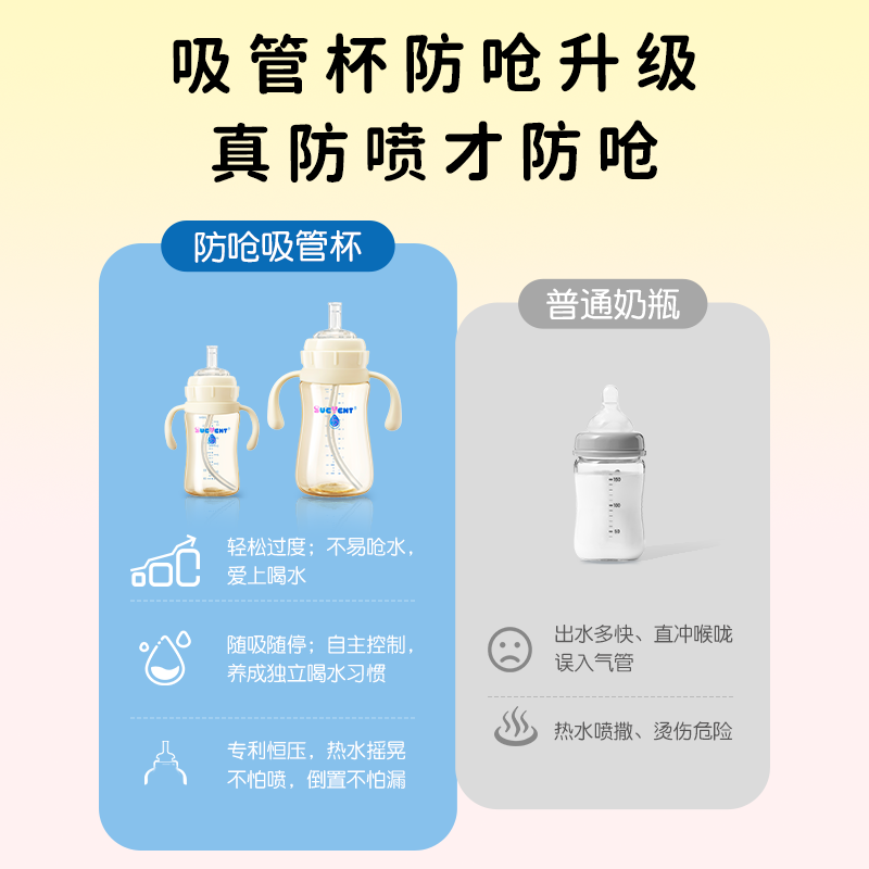 舒婴吸管杯奶瓶一岁以上直饮杯婴儿学饮杯12个月 3岁防喷防呛好吸