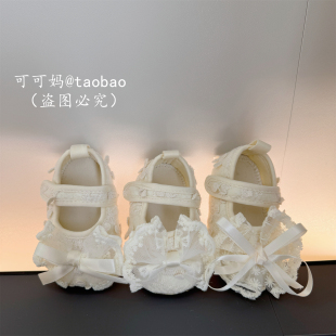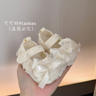 婴幼儿软胶底透气学步鞋 1岁女宝宝可爱蕾丝蝴蝶结公主鞋 春秋季