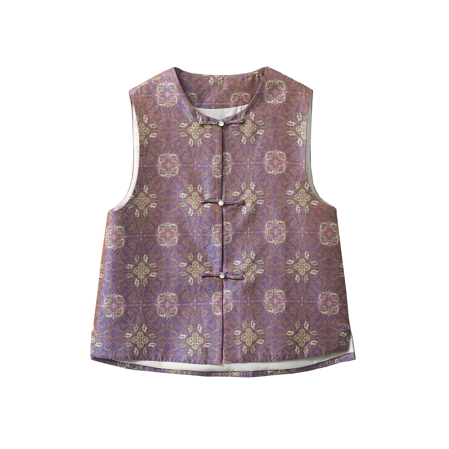一丝牵100%桑蚕丝蜀锦国风盘扣真丝马甲女圆领无袖 背心外穿上衣秋