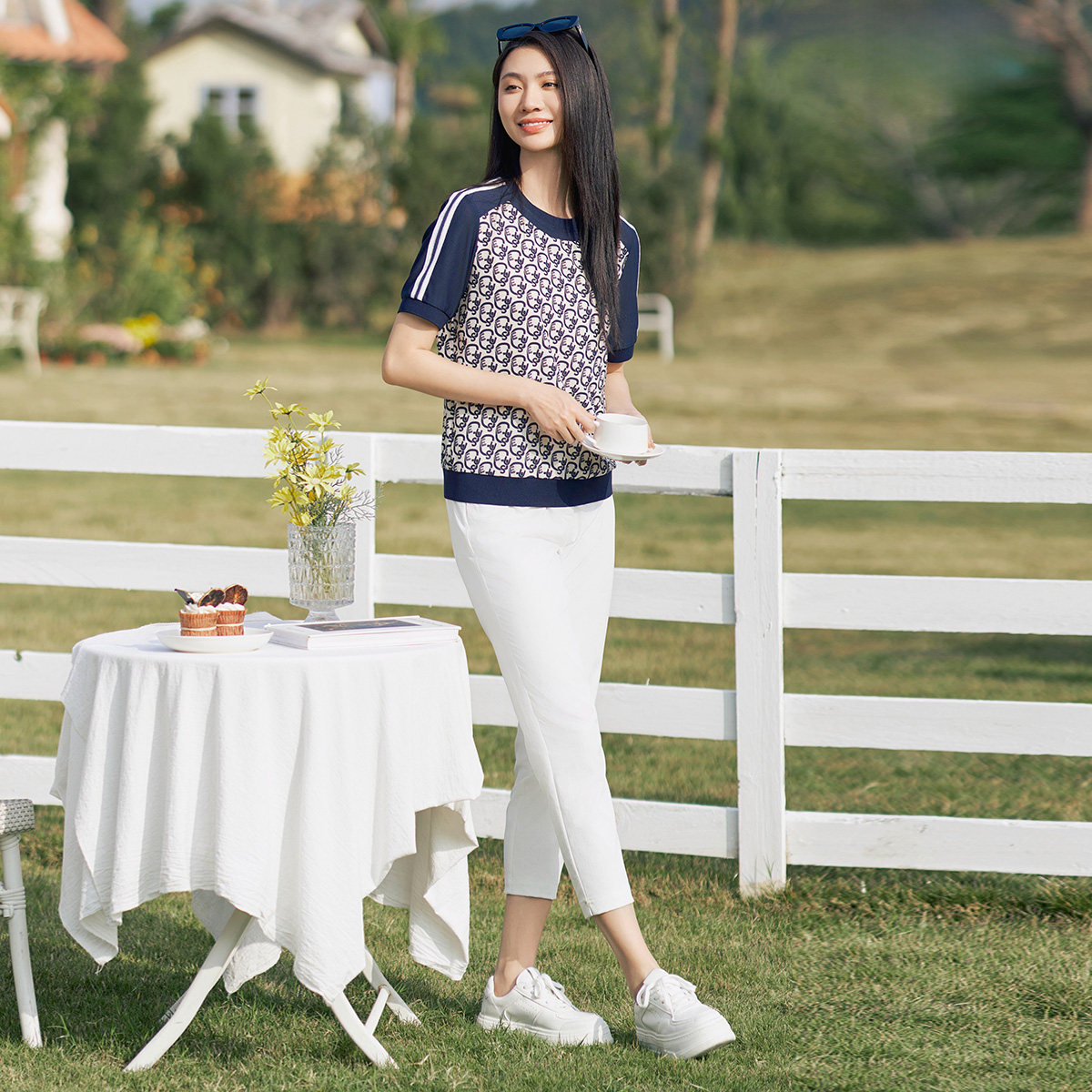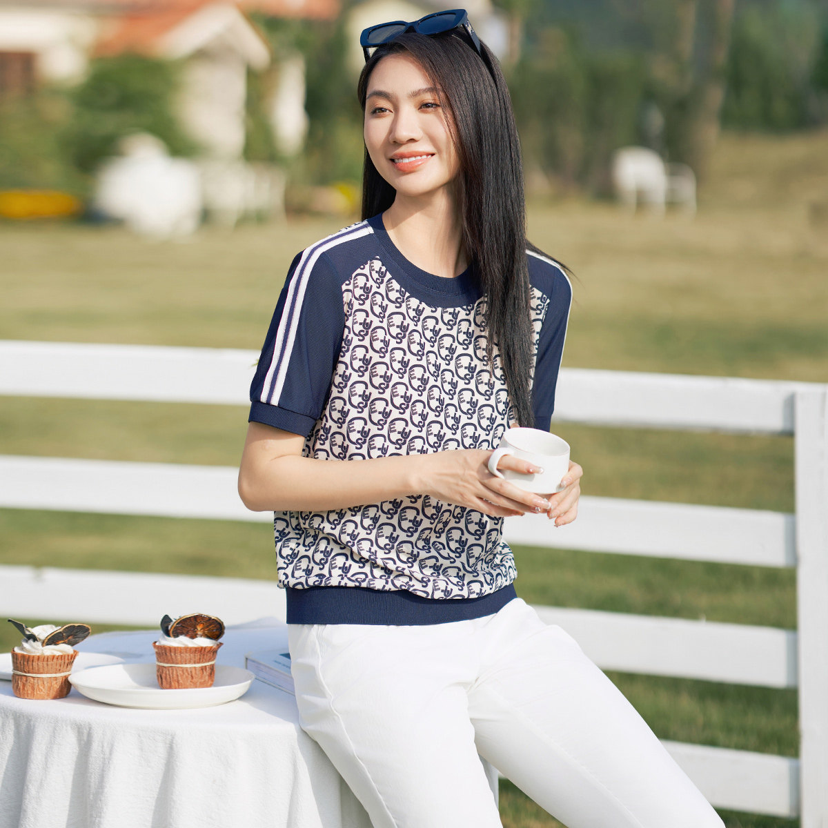 小衫 简约舒适休闲百搭撞色设计短袖 1E24S1251 专柜新款 歌蒂诗夏季
