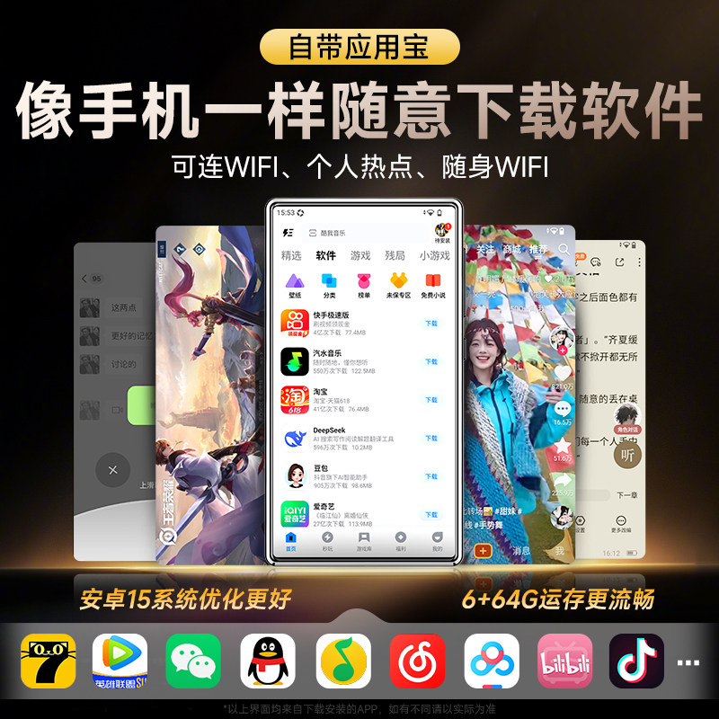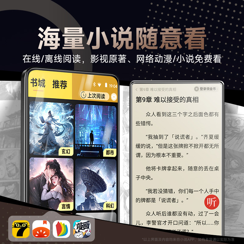 梵沐mp4mp5wifi可上网p4视频播放器mp6小说音乐专用黑科技屏全面