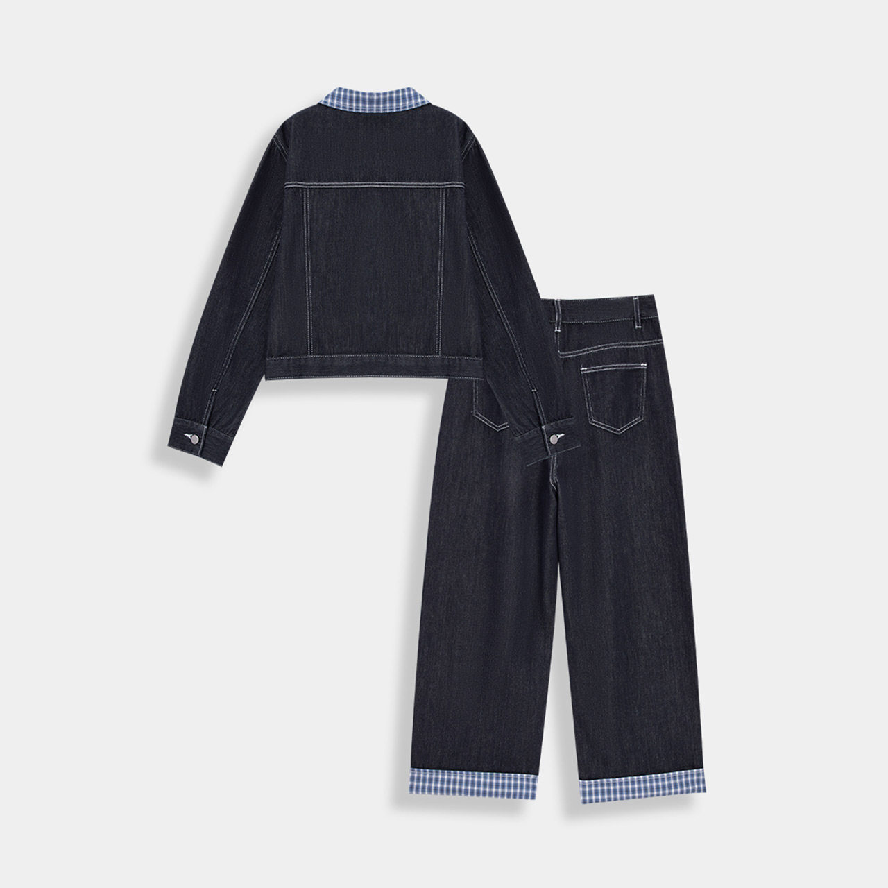 上下套裤 微胖 2026秋冬新款 港式 女 IEF 复古牛仔外套长裤 爱依服