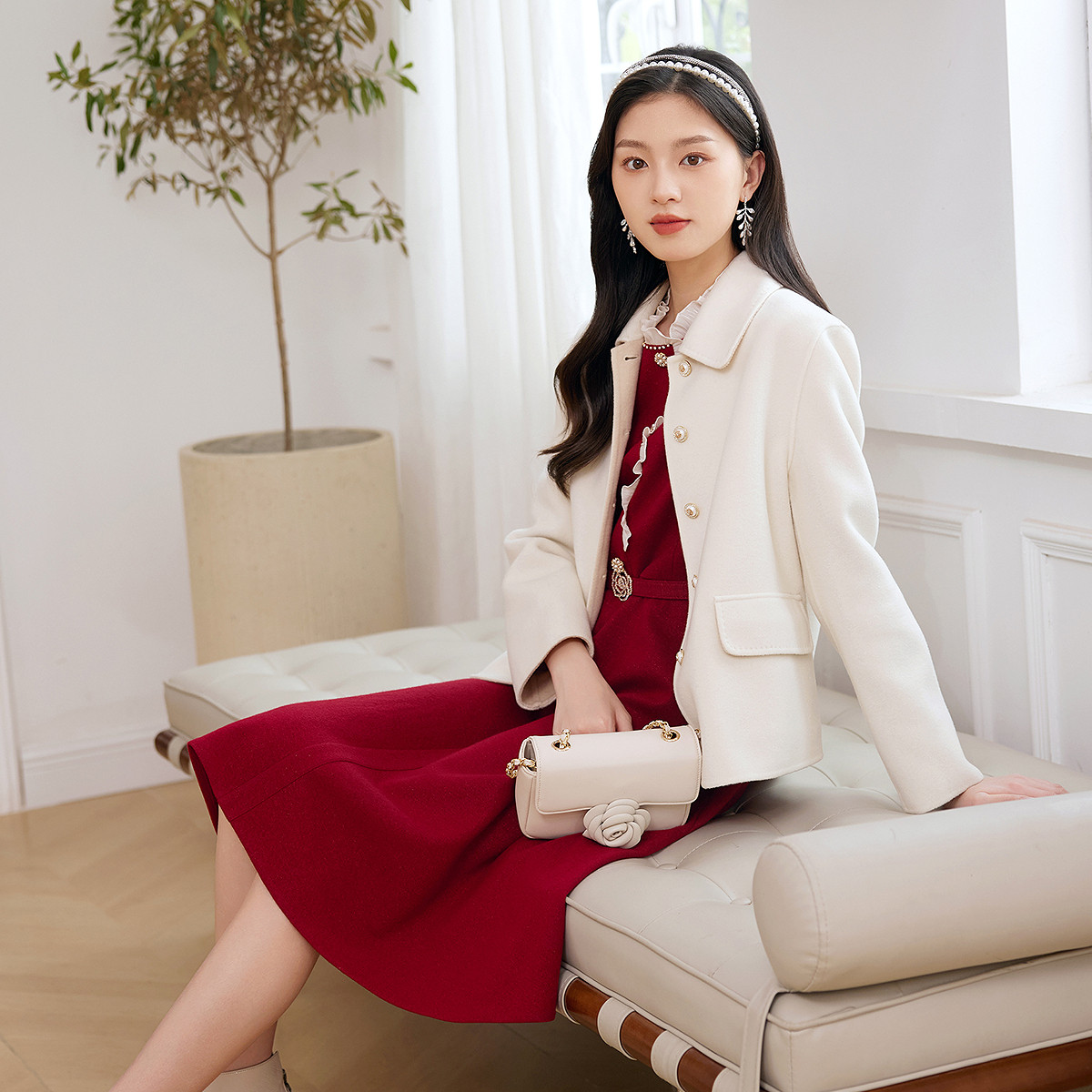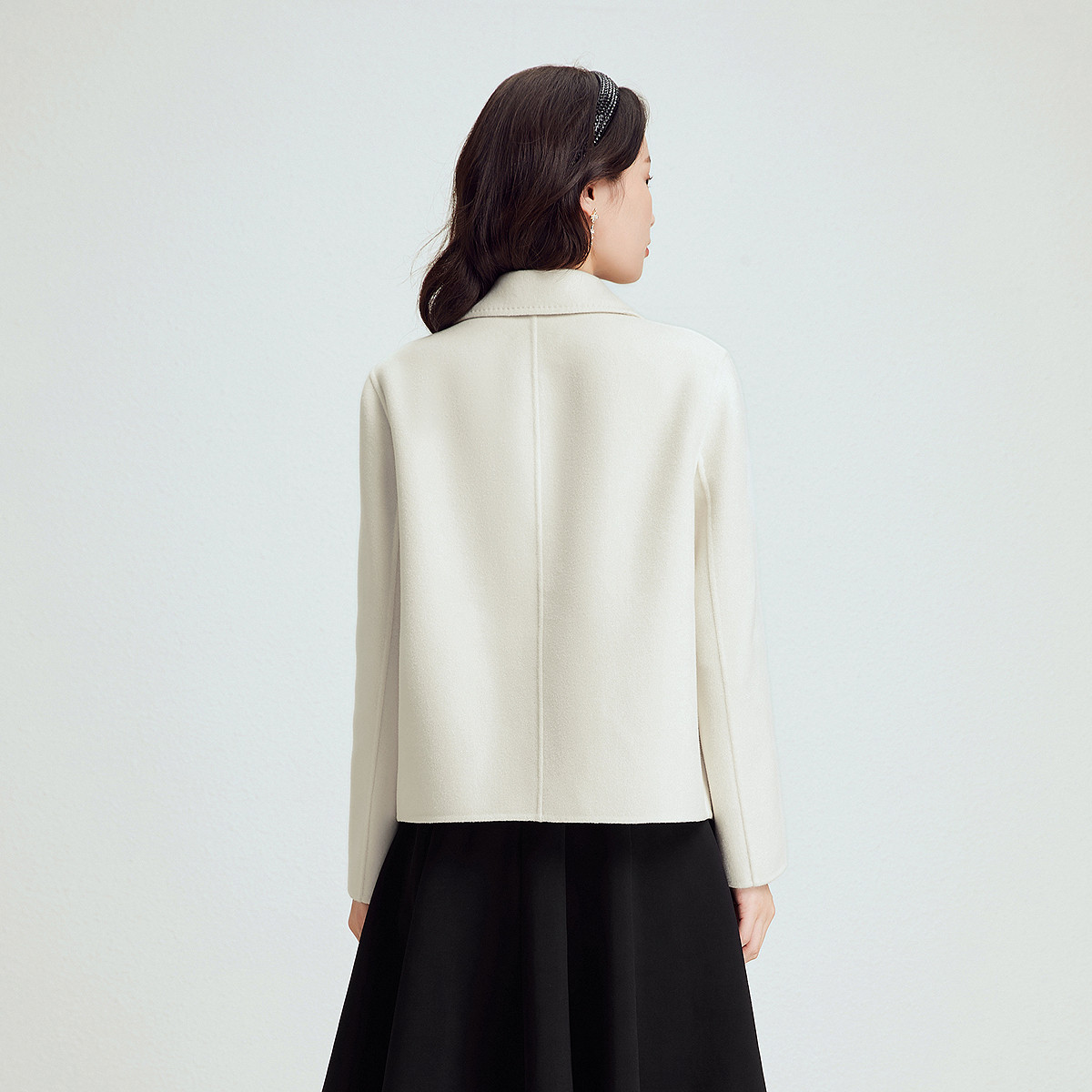 珂莱蒂尔秋季 优雅气质桑蚕丝羊毛呢绒感翻领玫瑰扣小个子短外套 款