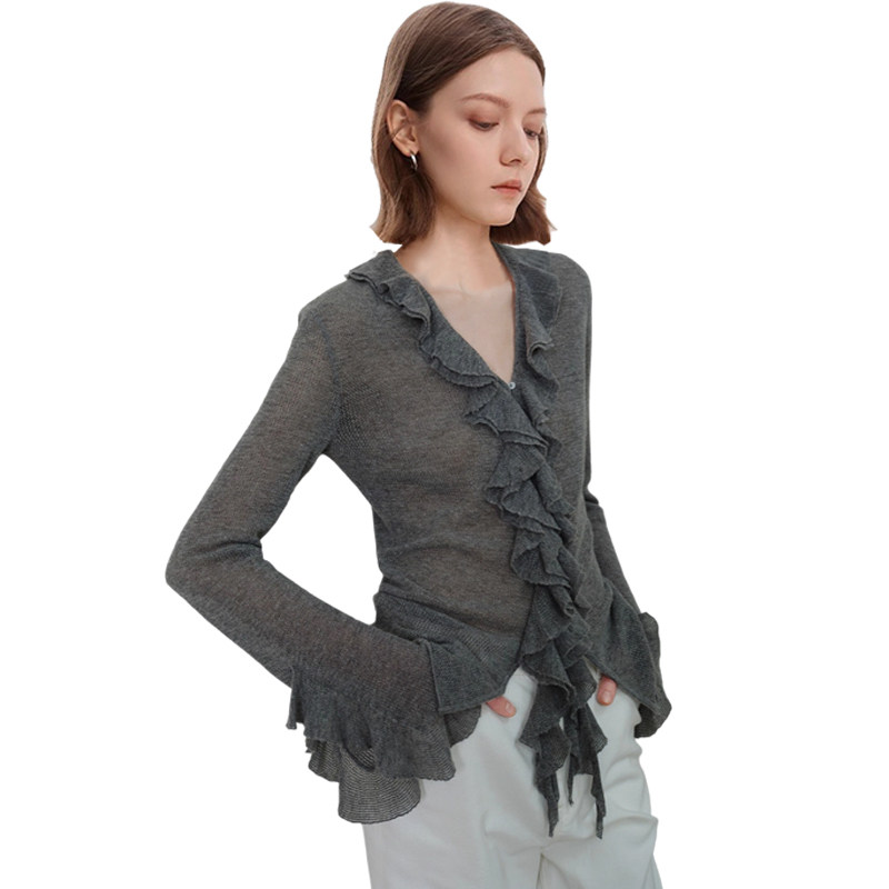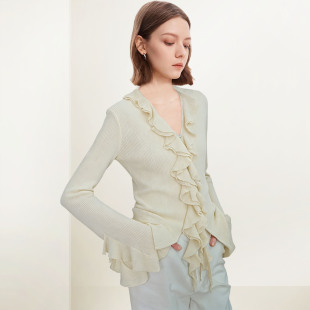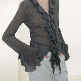 毛刷别致开衫 QOOEL法式 短款 外套女2026年春季 潮 不规则木耳边罩衫