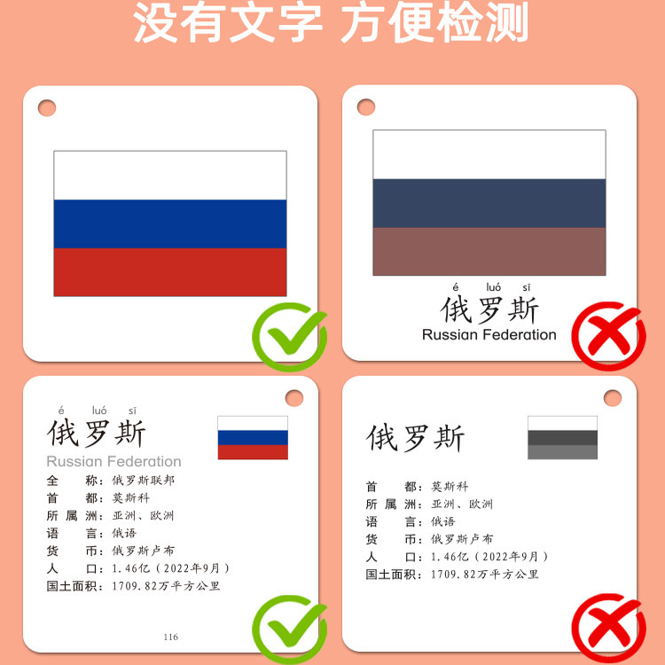 国旗认知卡片认识世界各国国家看图启蒙大全旗帜儿童早教闪卡玩具