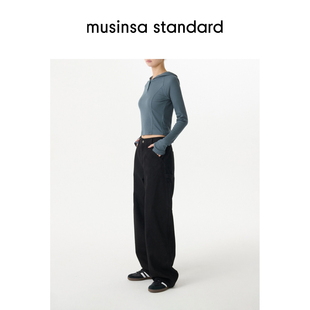男女2025秋冬加绒休闲宽松直筒阔腿裤 拉夏贝尔美式 黑色水洗牛仔裤