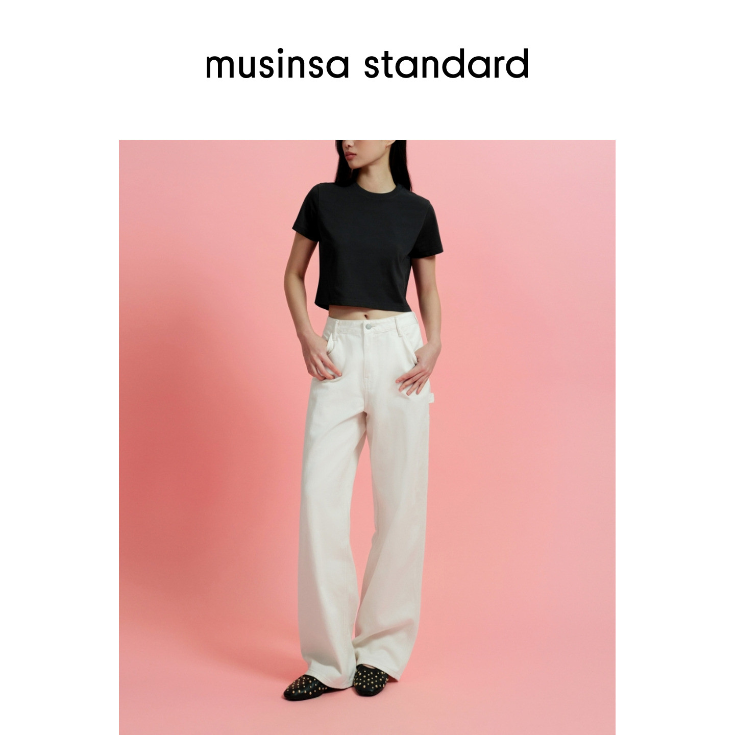 RHOMEHOUSE ins街头慵懒女宽松阔腿直筒弯刀破洞水洗棉牛仔长裤