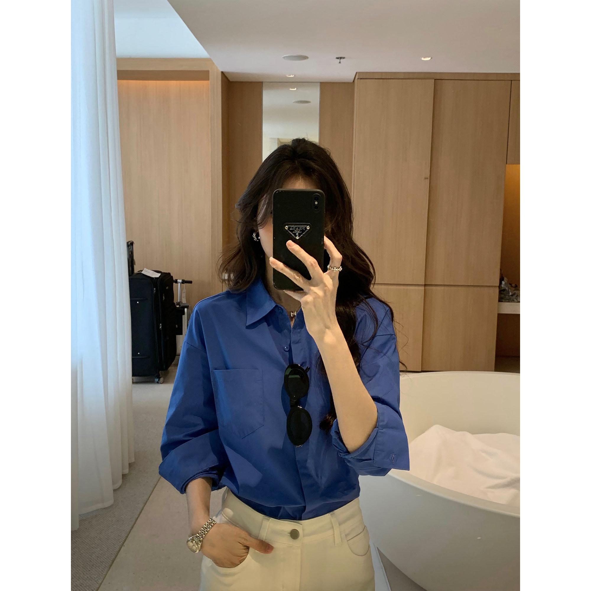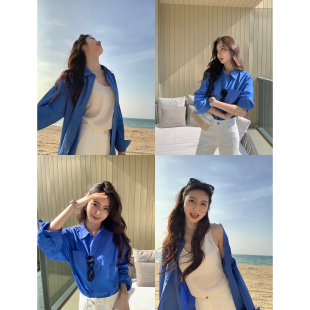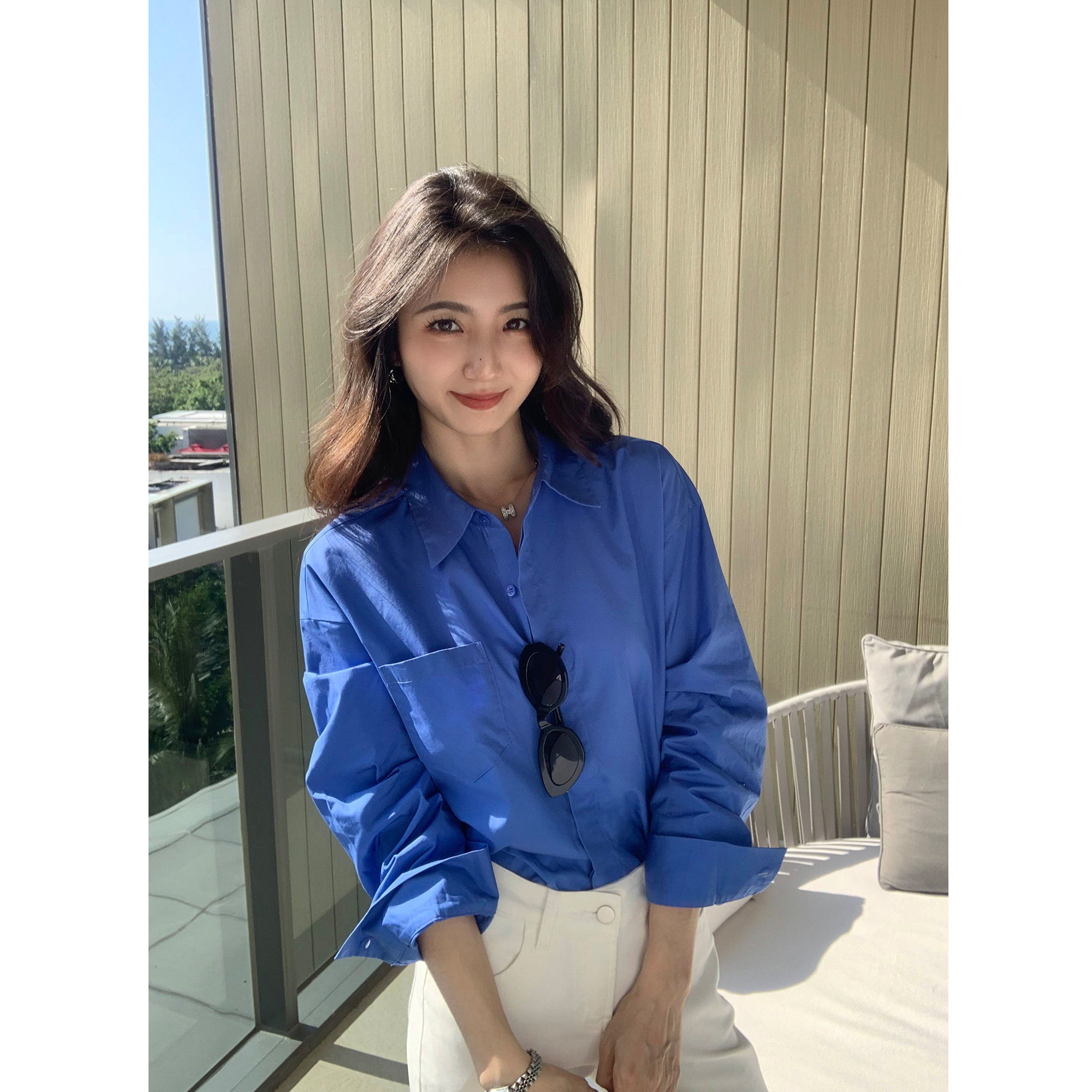 衬衫 高级感克莱因蓝长袖 女慵懒宽松舒适休闲衬衣 智性轮廓 MULVAN