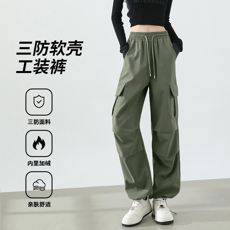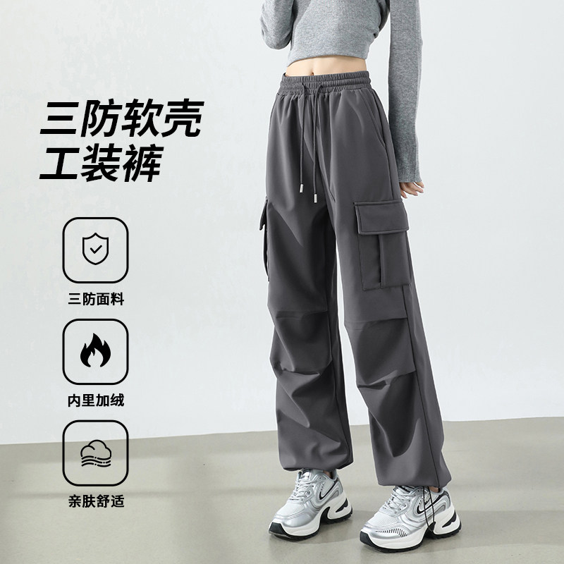 户外三防登山裤 班尼路S&K系列白色加绒软壳工装 新款 女2025秋季 裤