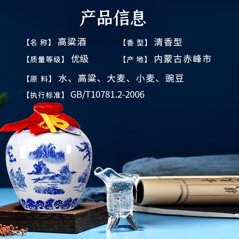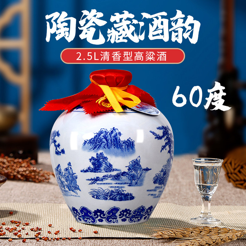 2020年生产景德镇青花瓷坛白酒60度2500ml清香型纯粮食原浆老酒