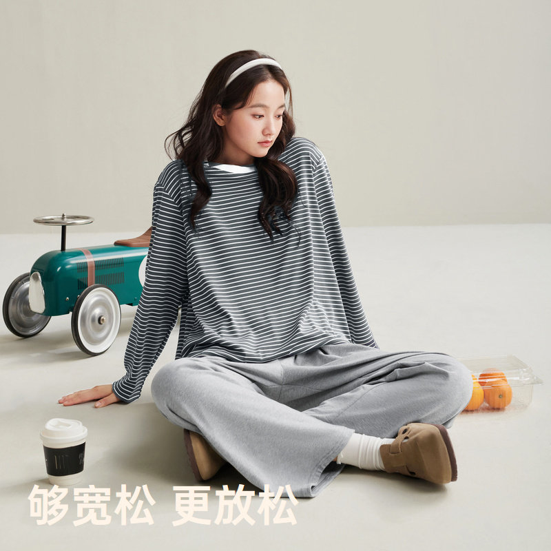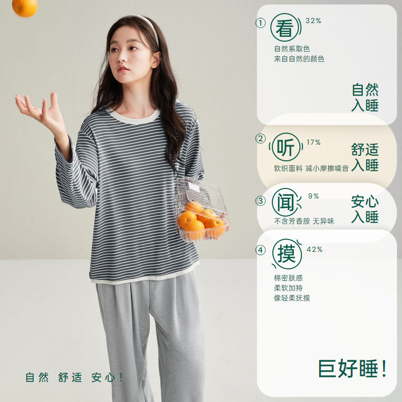 巨柔软 条纹长袖 睡衣女春秋季 纯棉套装 家居服 2025年新款 安之伴
