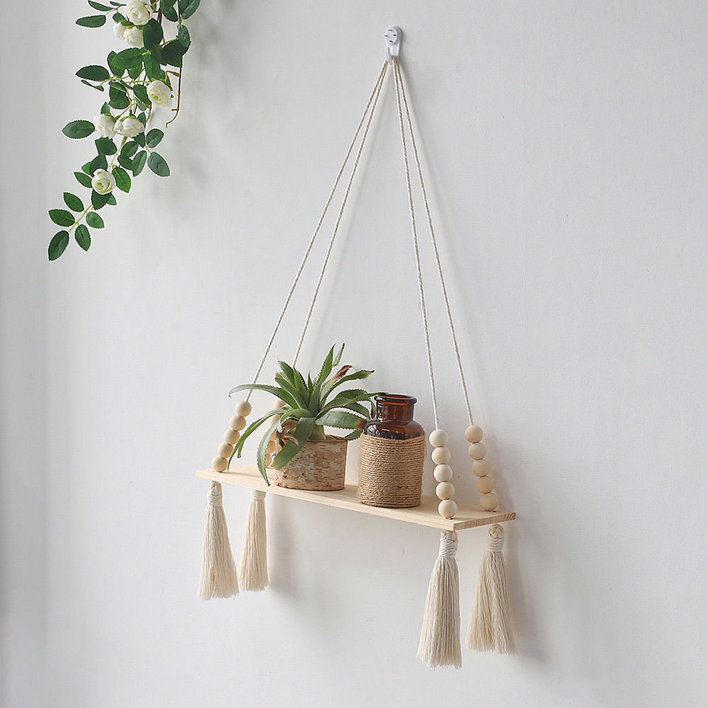 北欧ins风挂墙装 饰民宿客厅墙面壁挂置物架编织娃娃置物架绿植架