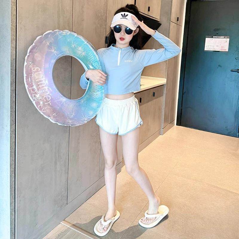 防晒游泳衣 大童女孩长袖 女童泳衣高颜值2026新款 儿童洋气分体泳装