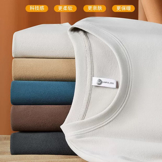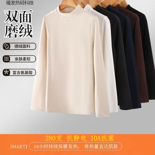 双面绒内衣女 T恤春秋冬情侣睡衣修身 德绒半高领打底衫 男保暖长袖
