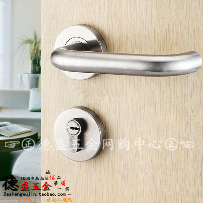 304不锈钢防火门分体锁7255 7260室内房门卧室锁办公楼双弯把手锁