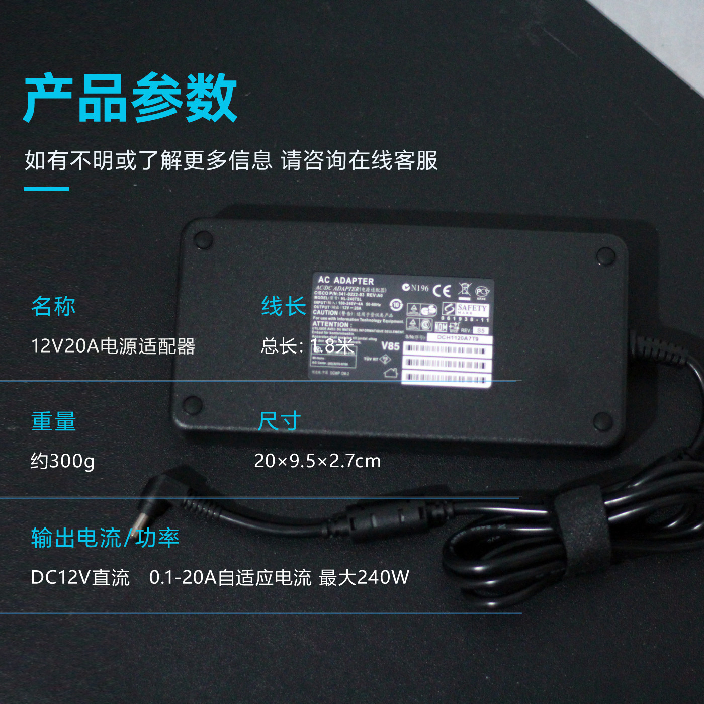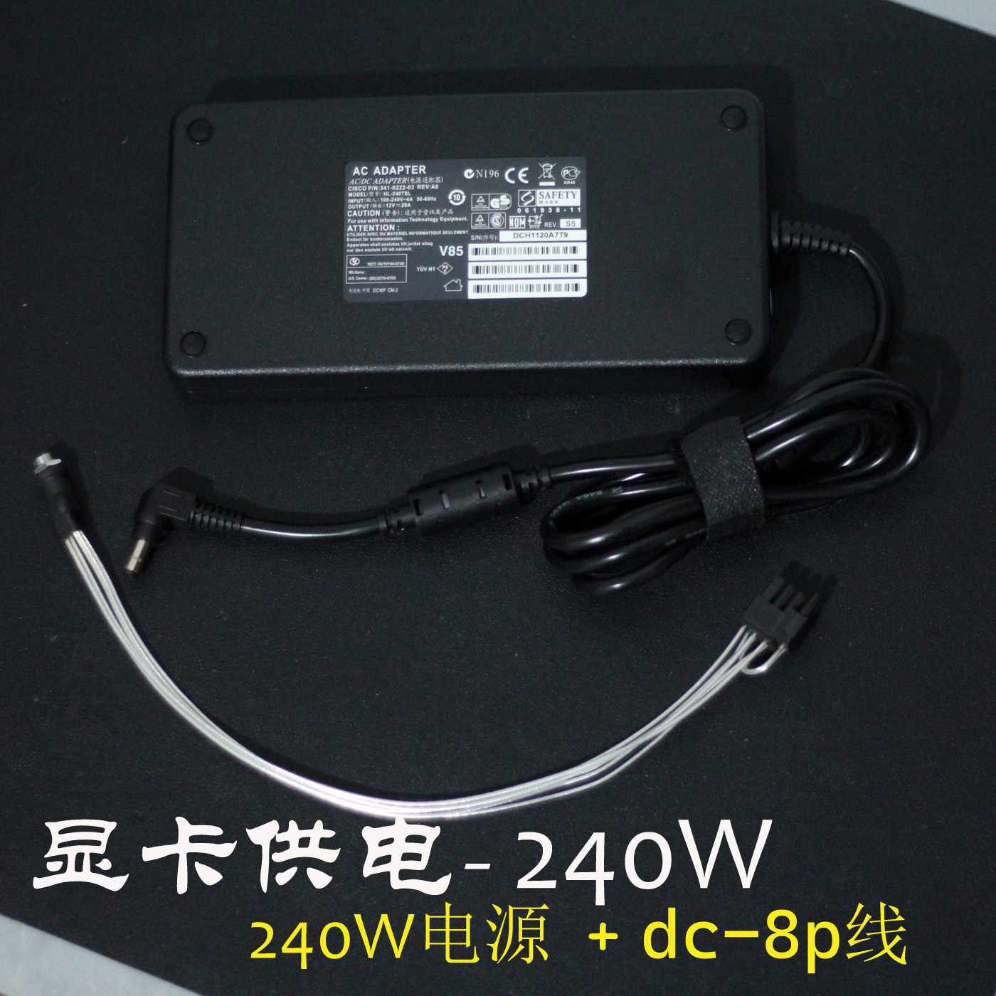 好货12V20A240W电源适配器改装 显卡独立外接供电pcie6P8p连接主机