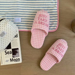 木地板待客家居 静音软底居家拖四季 2026新款 复古格纹棉麻拖鞋