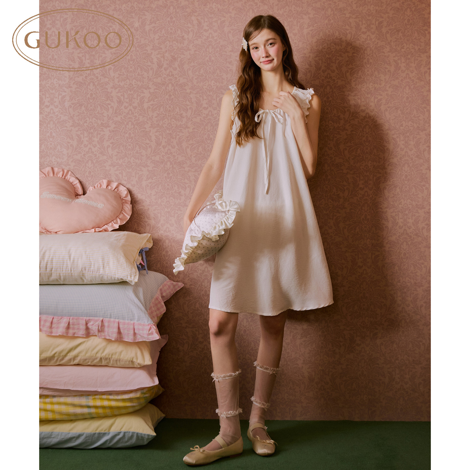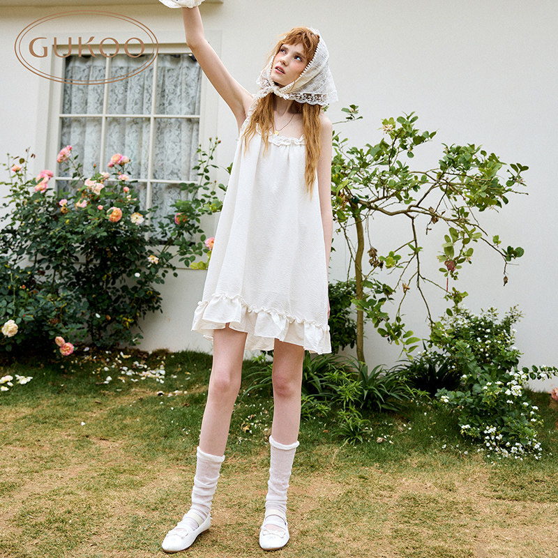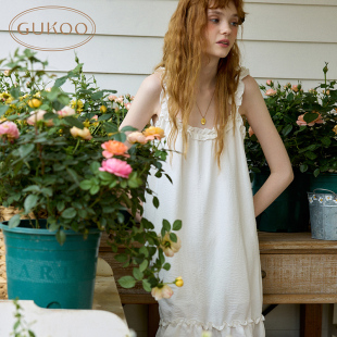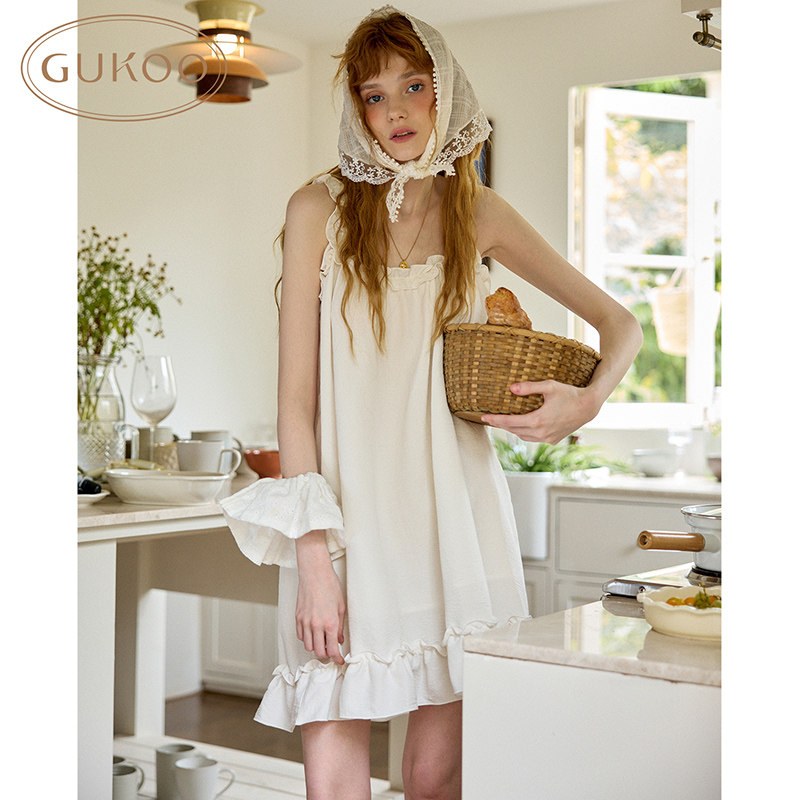 Gukoo 纯色简约木耳边花边吊带家居服睡裙 果壳睡衣女夏季