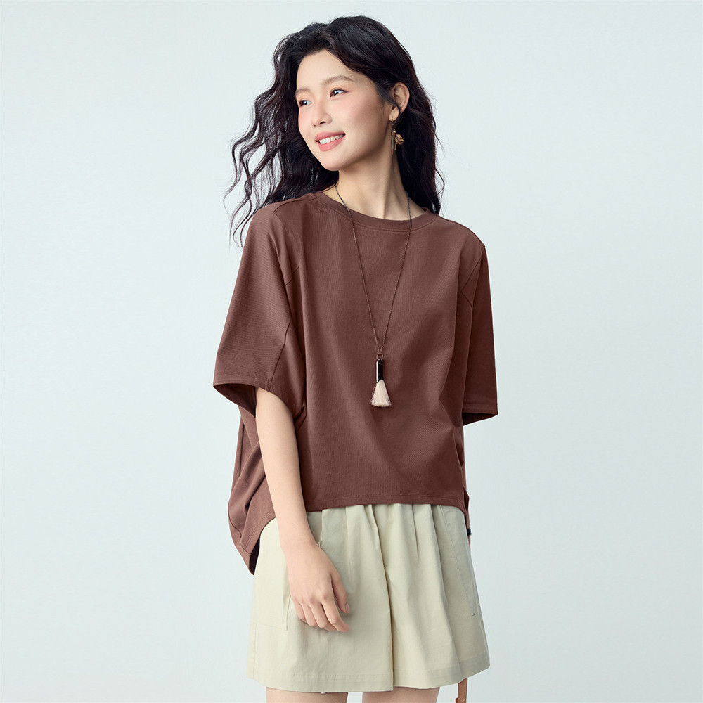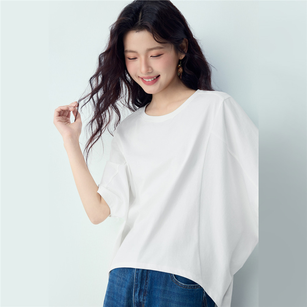 上衣13326222 前短后长宽松圆领蝙蝠袖 佐丹奴中袖 T恤女2026年夏季