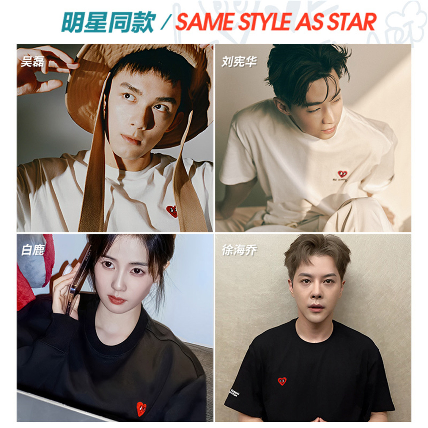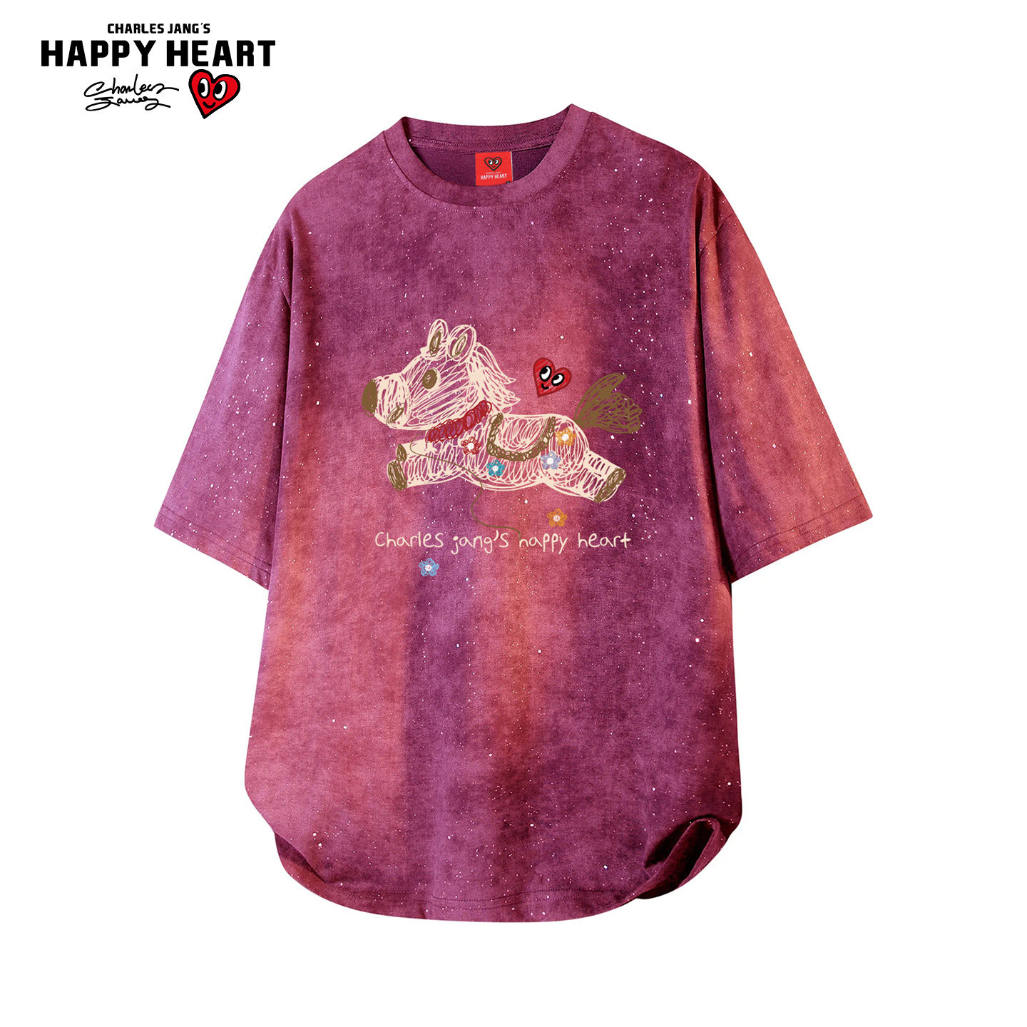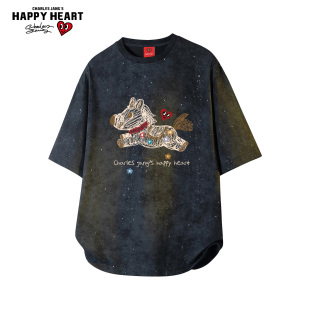 查尔斯桃心扎染满天星短袖 T恤纯棉百搭圆领小马印花宽松情侣上衣