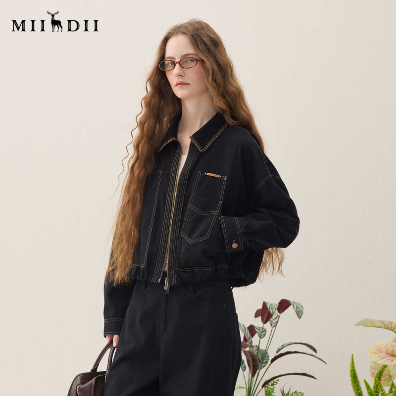 黑色百搭大口袋酷感女261MW0228 新品 谜底牛仔外套长袖 2026年春季