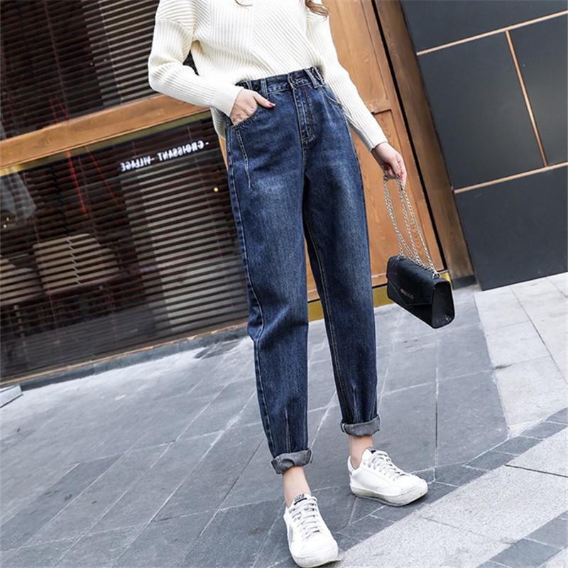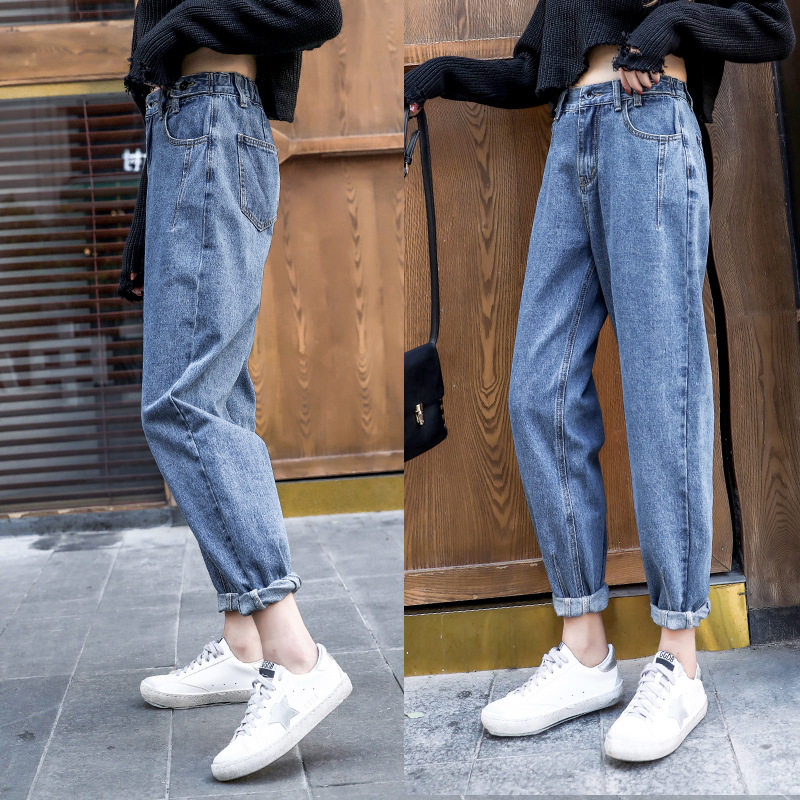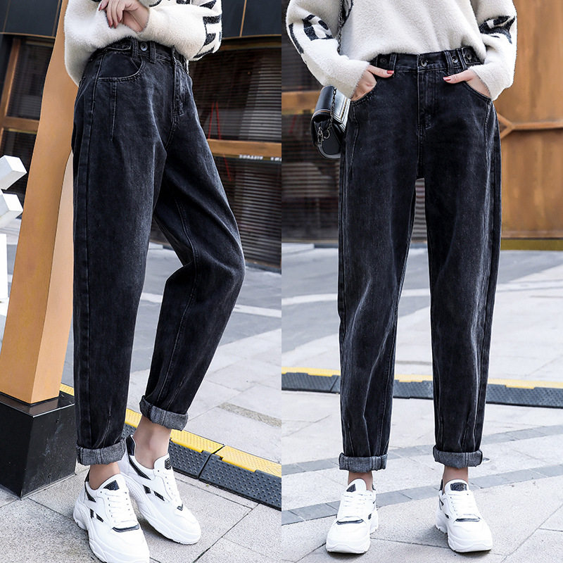 阔腿裤 2021新款 子韩版 显瘦老爹裤 高腰牛仔裤 复古宽松哈伦裤 女秋季