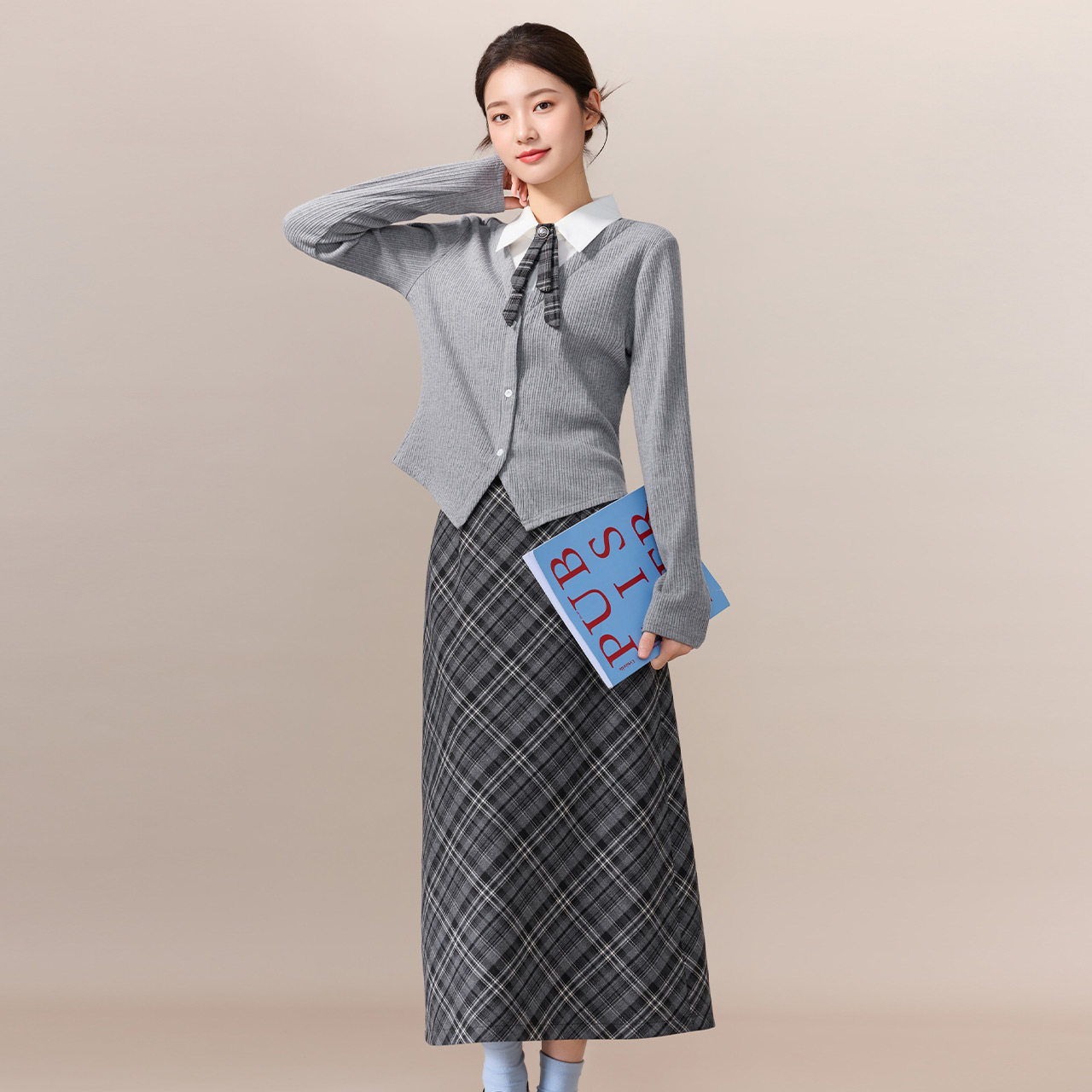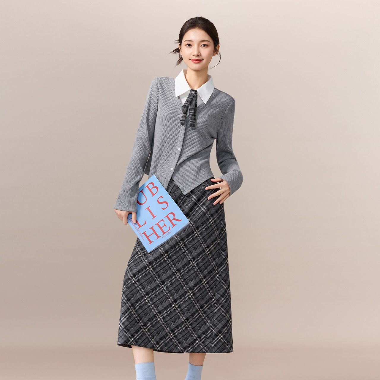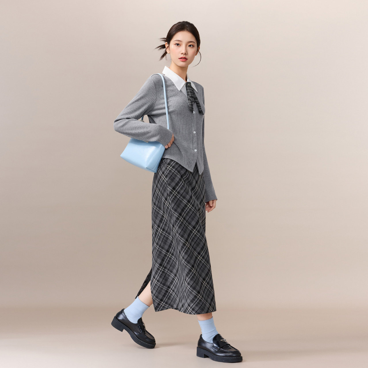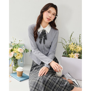 韩版 新款 文艺知性学院风上下套长裙 爱依服一整套穿搭2026春季 IEF