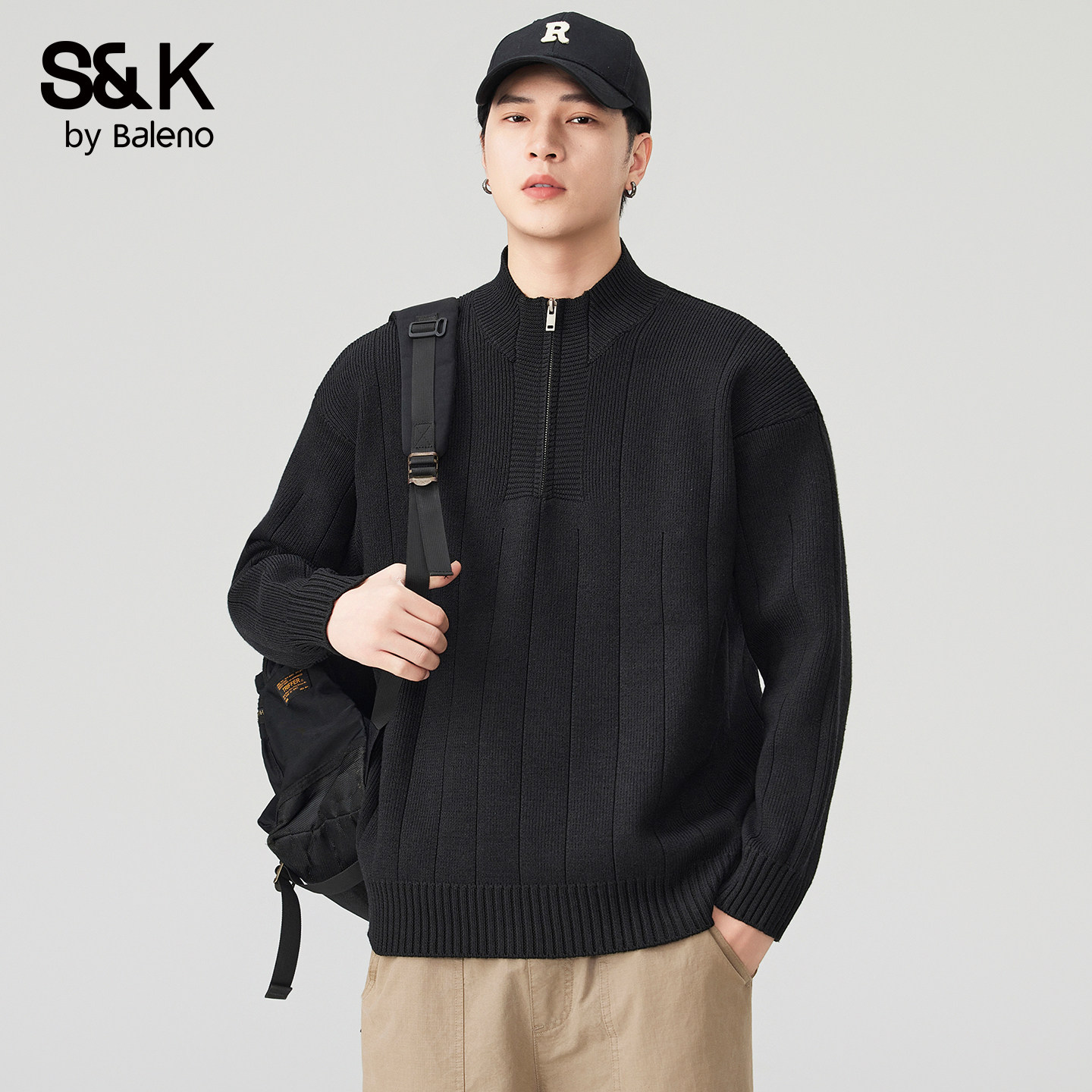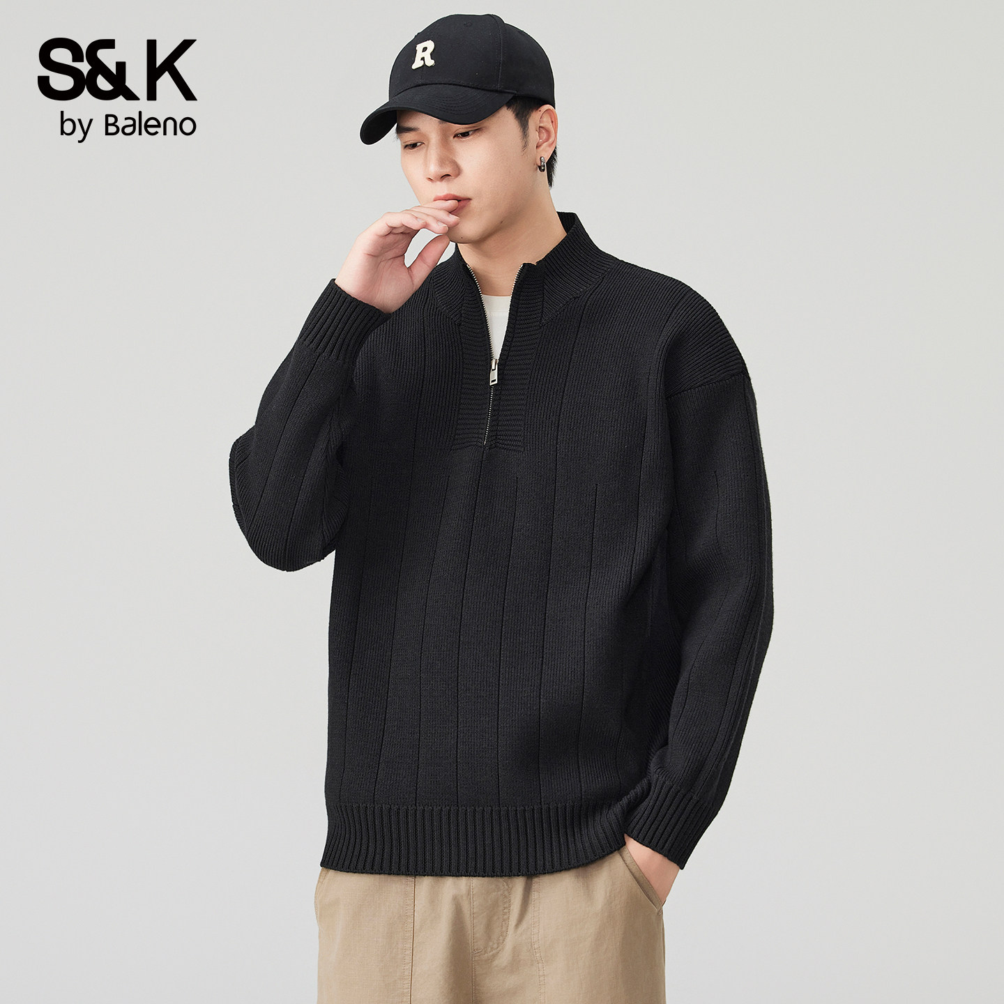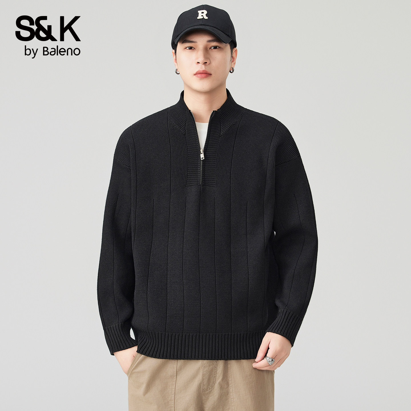 立领慵懒风针织衫 2026新款 上衣YS 美式 班尼路SK半拉链毛衣男春夏季