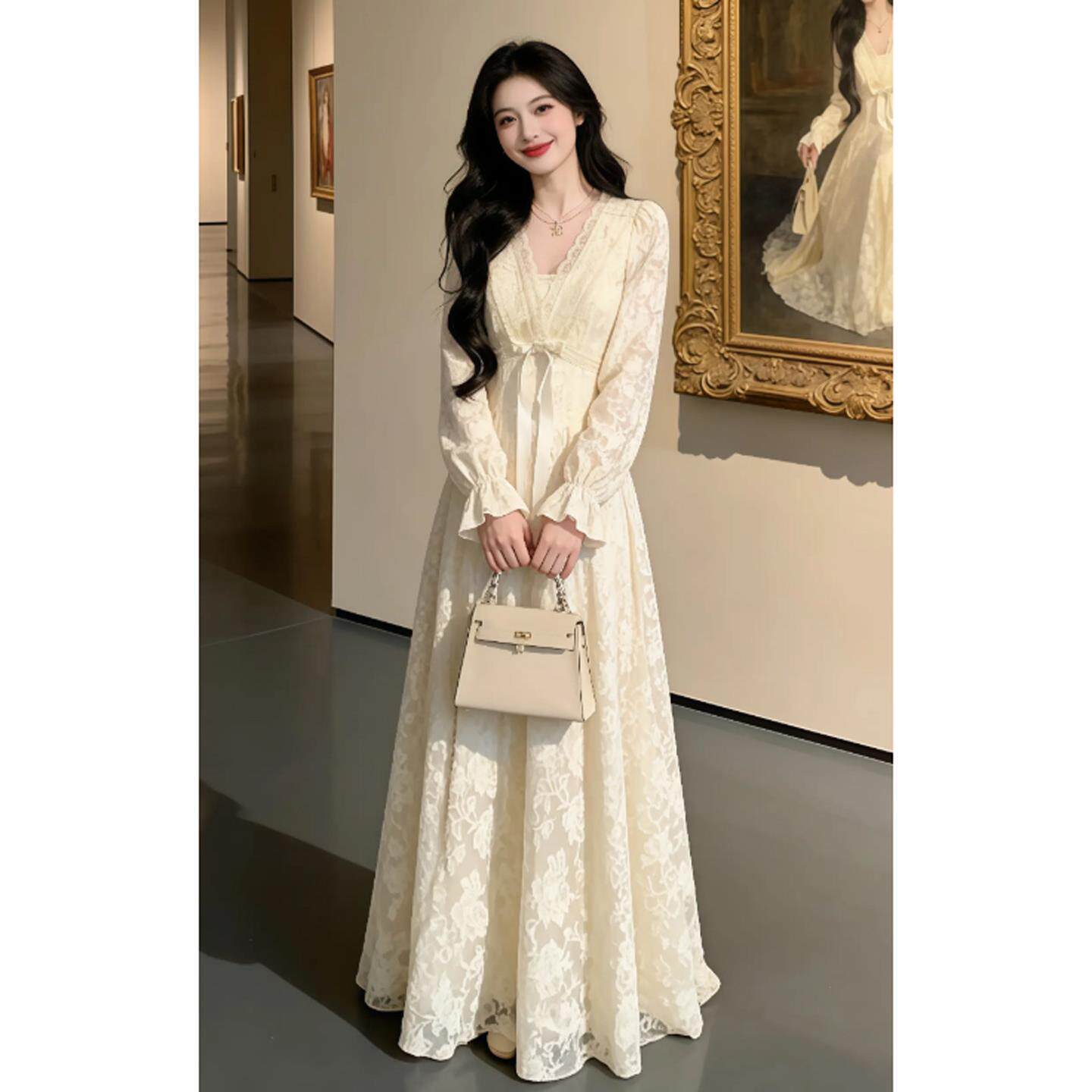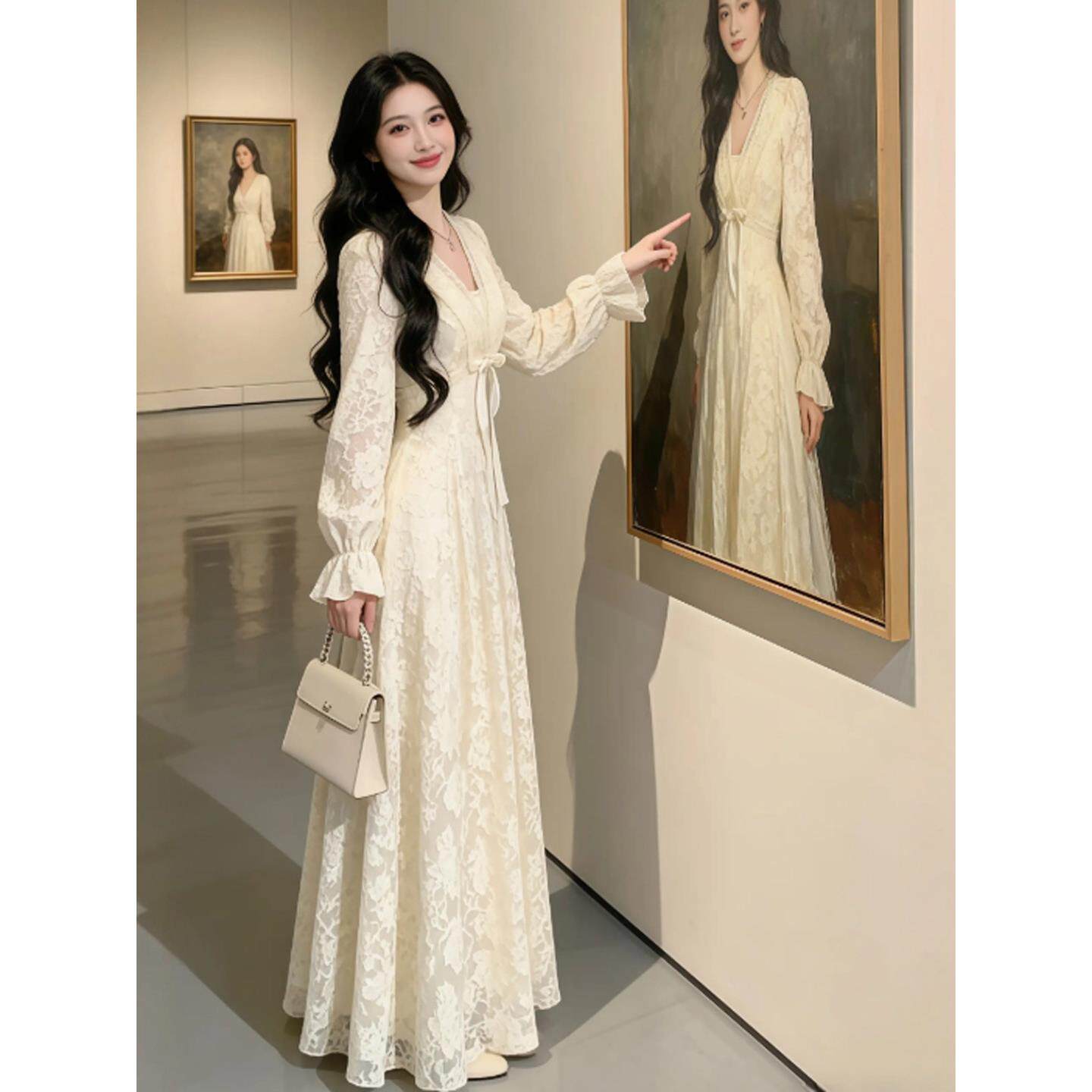 仙女裙女士连衣裙 温柔风独特漂亮V领收腰修身 2026巨好看冬装 裙装