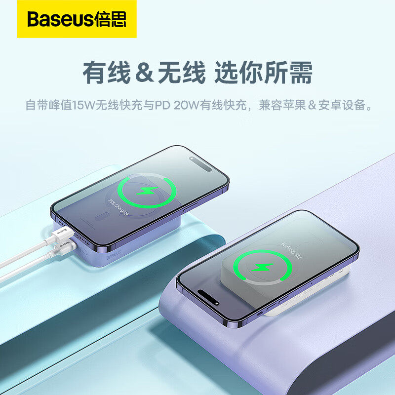 无线适用苹果17小巧大容量20000毫安便携快充国家标识移动电源 倍思磁吸充电宝新款 充电宝3c认证可上飞机