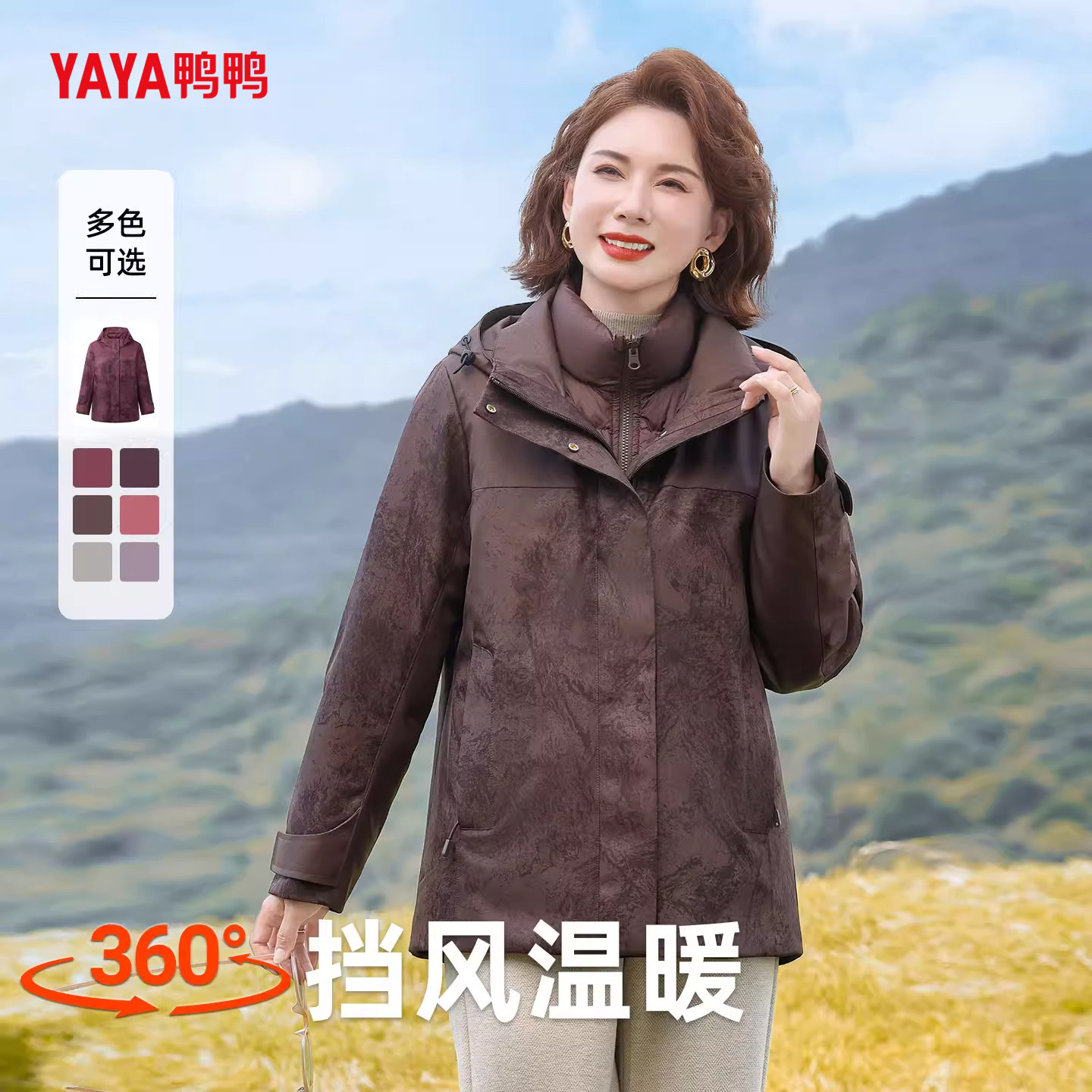 YAYA鸭鸭妈妈三合一羽绒服女2025新款 中老年非冲锋衣内胆外套 冬装
