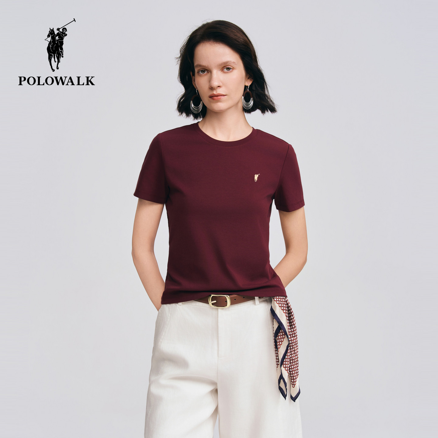 简约纯色圆领短袖 POLOWALK女式 新品 2026春季 休闲通勤百搭T恤 短袖