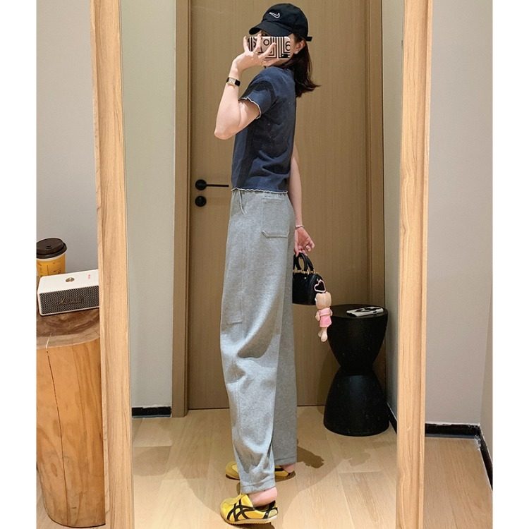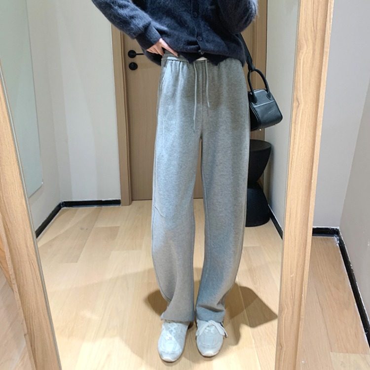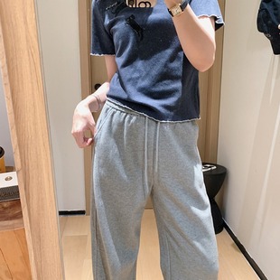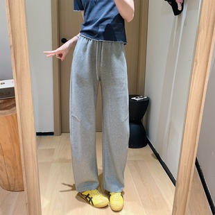 xxs码 150显高灰色休闲卫裤 女小个子秋季 抽绳高腰垂感慵懒风遛弯裤