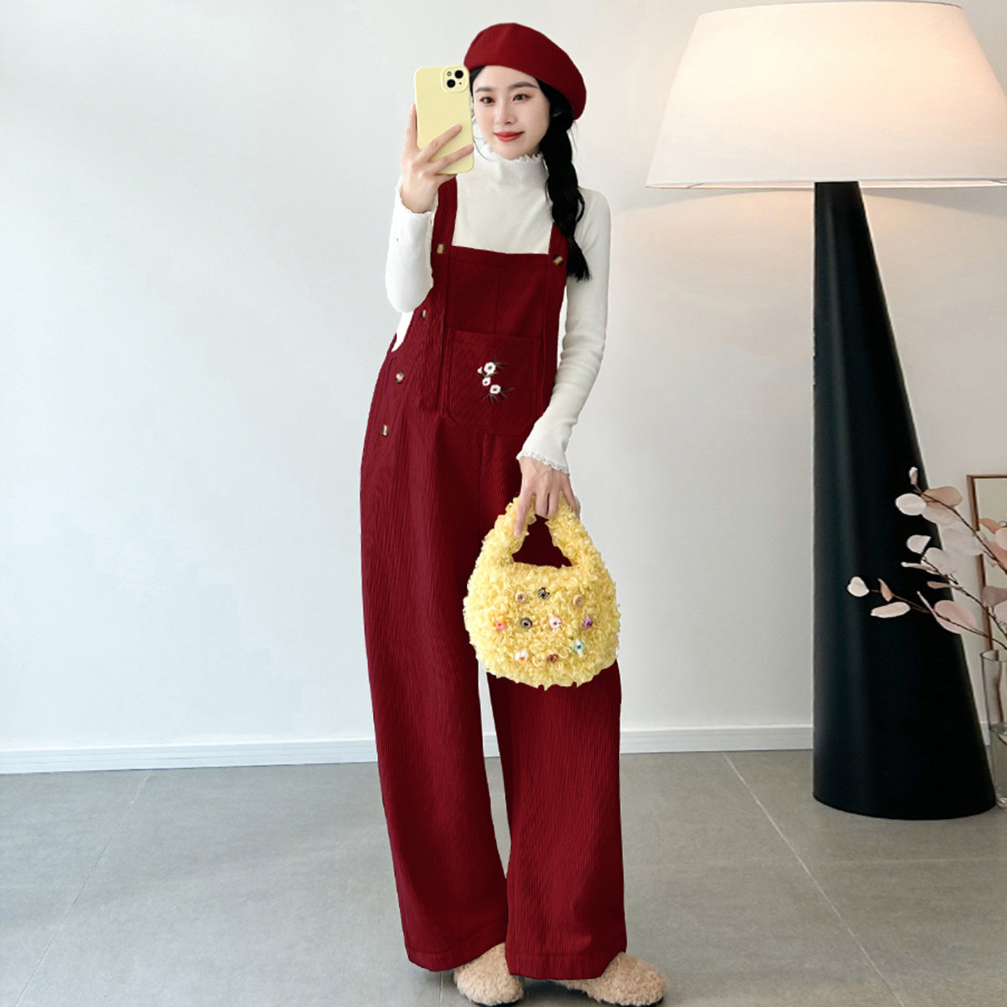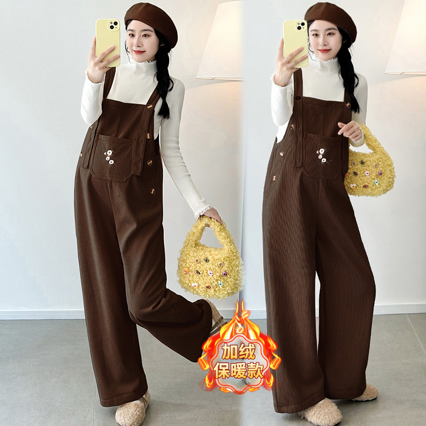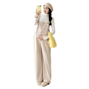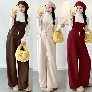 加厚加绒外穿宽松灯芯绒孕期裤 孕妇背带裤 孕妇装 2025新款 子 秋冬款