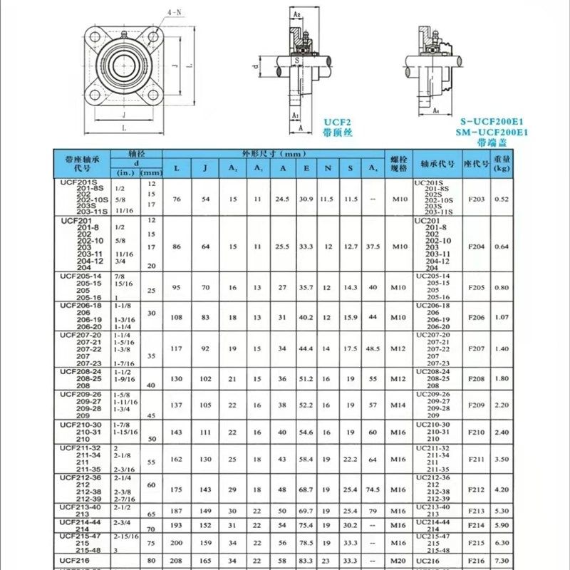 外球面带方形座轴承UCF201F202F203F204F205F206F207F208F209F210