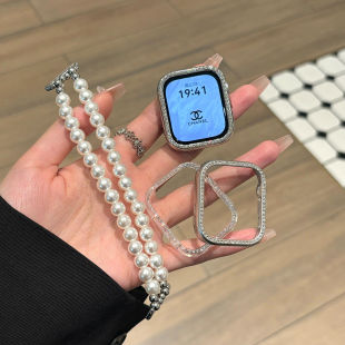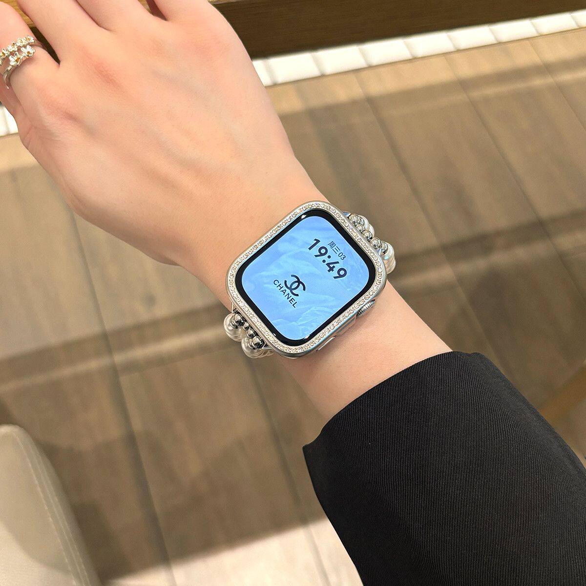 极光白珍珠表带适用苹果S11手表带链通用小米10华为Fit43施家简约