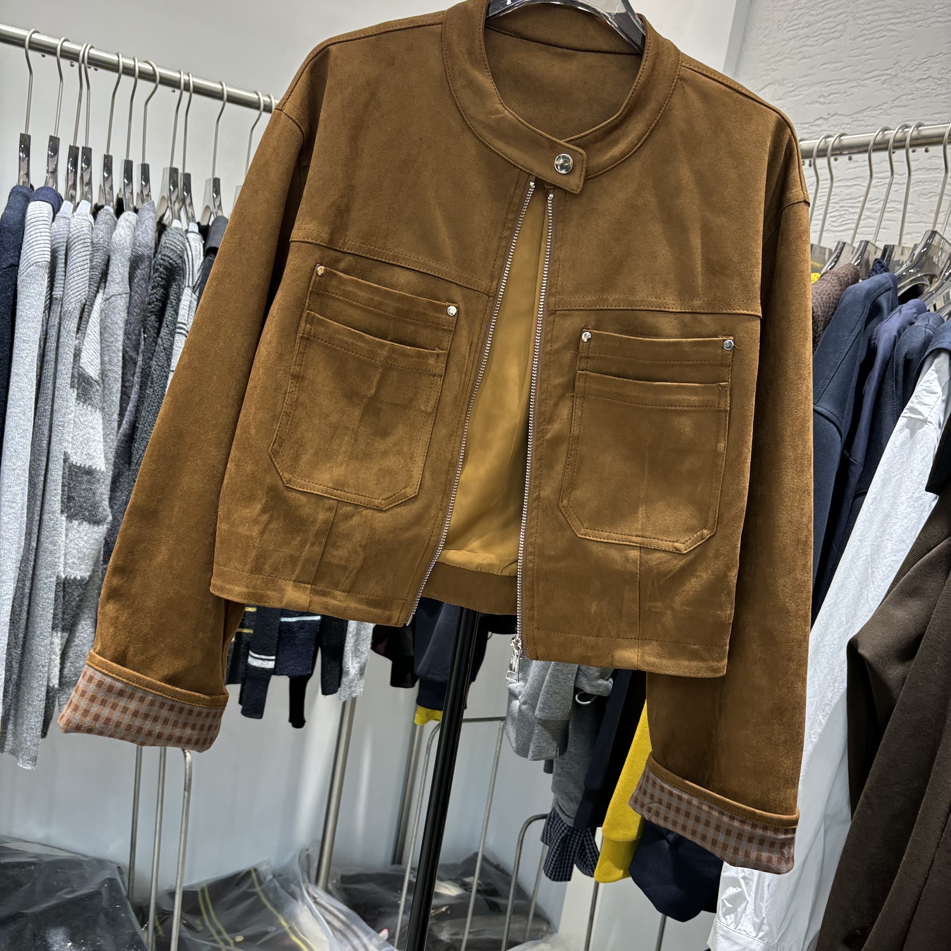 2025早秋时尚 气质立领拉链麂皮绒短外套女宽松休闲百搭夹克上衣女