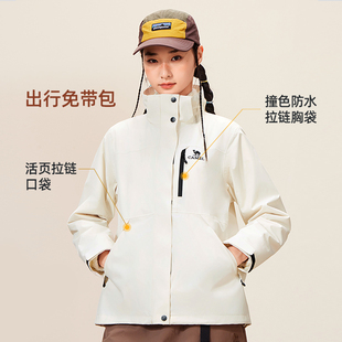骆驼女装 秋冬全天候轻量化户外防风防水登山服 硬壳冲锋衣2025新款